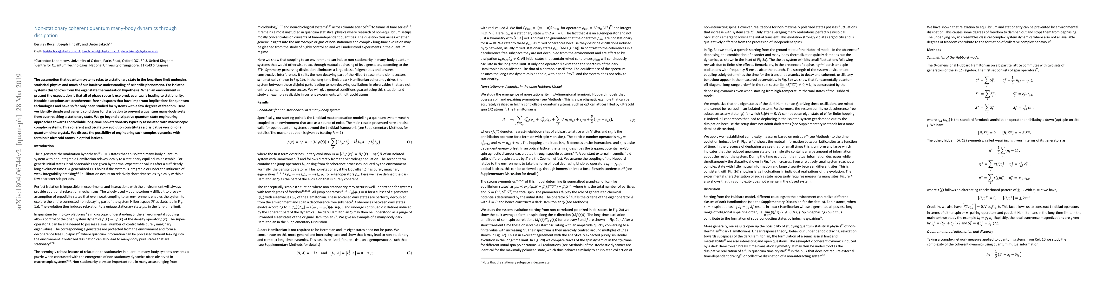 Research reveals that dissipation can prevent quantum many-body systems from reaching a stationary state, leading to non-stationary coherent dynamics instead.