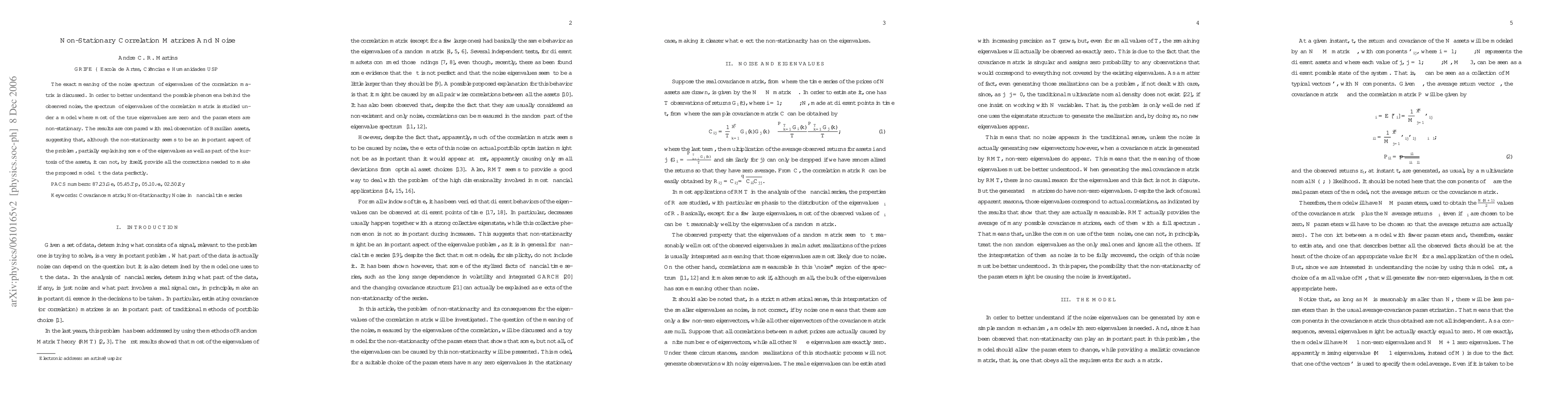 The exact meaning of the noise spectrum of eigenvalues of the covariance matrix is discussed. In order to better understand the possible phenomena behind the observed noise, the spectrum of eigenvalues of the covariance matrix is studied under a model where most of the true eigenvalues are zero and the parameters are non-stationary. The results are compared with real observation of Brazilian assets, suggesting that, although the non-stationarity seems to be an important aspect of the problem, partially explaining some of the eigenvalues as well as part of the kurtosis of the assets, it can not, by itself, provide all the corrections needed to make the proposed model fit the data perfectly.