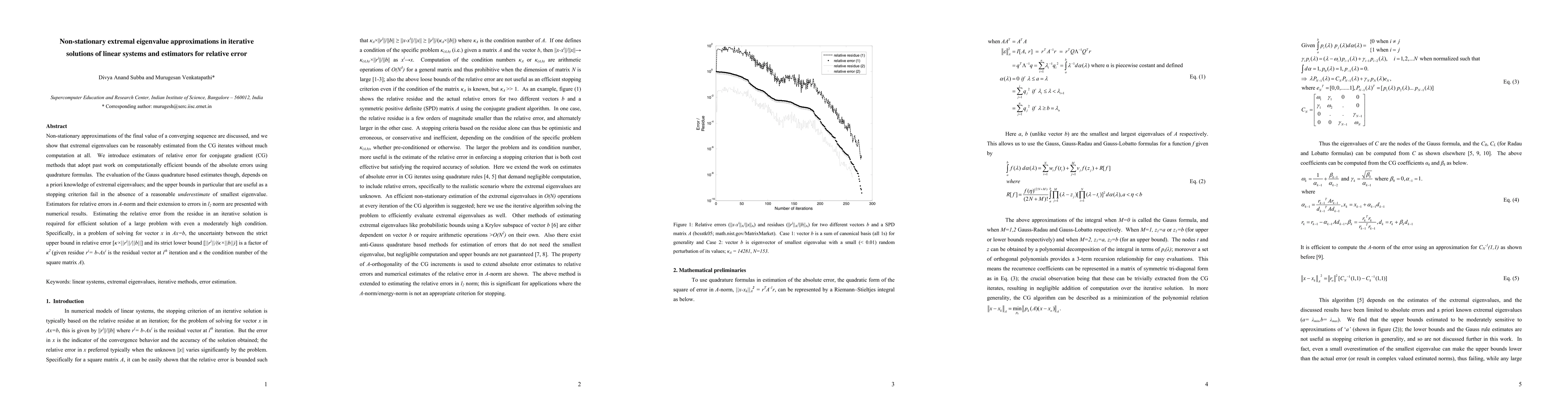 Non-stationary approximations of the final value of a converging sequence are discussed, and we show that extremal eigenvalues can be reasonably estimated from the CG iterates without much computation at all. We introduce estimators of relative error for conjugate gradient (CG)methods that adopt past work on computationally efficient bounds of the absolute errors using quadrature formulas. The evaluation of the Gauss quadrature based estimates though, depends on a priori knowledge of extremal eigenvalues; and the upper bounds in particular that are useful as a stopping criterion fail in the absence of a reasonable underestimate of smallest eigenvalue. Estimators for relative errors in A-norm and their extension to errors in l2 norm are presented with numerical results. Estimating the relative error from the residue in an iterative solution is required for efficient solution of a large problem with even a moderately high condition. Specifically, in a problem of solving for vector x in Ax=b, the uncertainty between the strict upper bound in relative error [{\kappa}*||r(i)||/||b||] and its strict lower bound [||r(i)||/({\kappa}*||b||)] is a factor of {\kappa}^2 (given residue r(i)= b-Ax(i) is the residual vector at ith iteration and {\kappa} the condition number of the square matrix A).