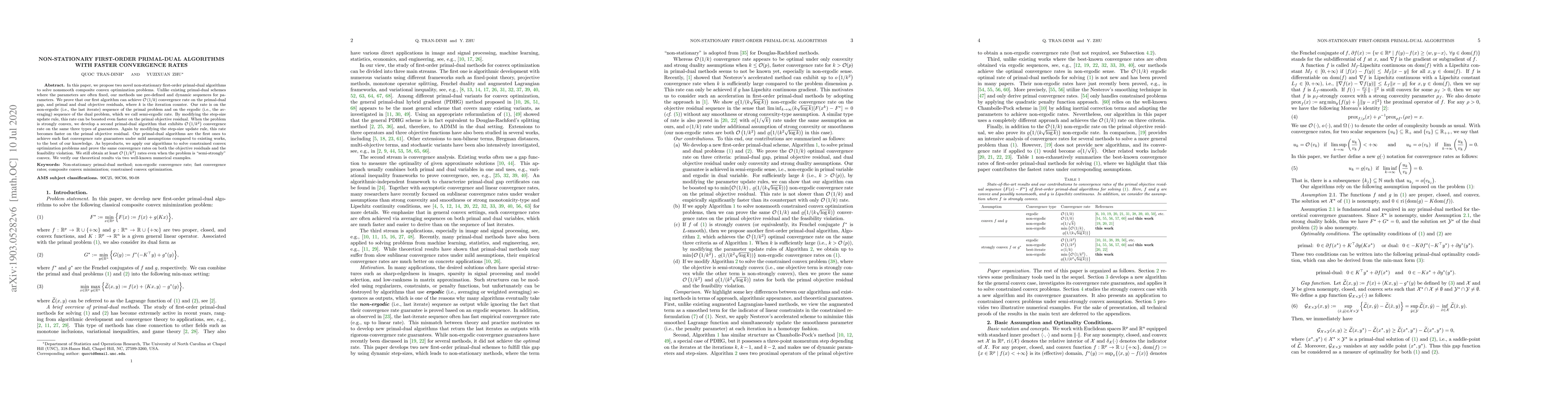 In this paper, we propose two novel non-stationary first-order primal-dual algorithms to solve nonsmooth composite convex optimization problems. Unlike existing primal-dual schemes where the parameters are often fixed, our methods use pre-defined and dynamic sequences for parameters. We prove that our first algorithm can achieve $\mathcal{O}(1/k)$ convergence rate on the primal-dual gap, and primal and dual objective residuals, where $k$ is the iteration counter. Our rate is on the non-ergodic (i.e., the last iterate) sequence of the primal problem and on the ergodic (i.e., the averaging) sequence of the dual problem, which we call semi-ergodic rate. By modifying the step-size update rule, this rate can be boosted even faster on the primal objective residual. When the problem is strongly convex, we develop a second primal-dual algorithm that exhibits $\mathcal{O}(1/k^2)$ convergence rate on the same three types of guarantees. Again by modifying the step-size update rule, this rate becomes faster on the primal objective residual. Our primal-dual algorithms are the first ones to achieve such fast convergence rate guarantees under mild assumptions compared to existing works, to the best of our knowledge. As byproducts, we apply our algorithms to solve constrained convex optimization problems and prove the same convergence rates on both the objective residuals and the feasibility violation. We still obtain at least $\mathcal{O}(1/k^2)$ rates even when the problem is "semi-strongly" convex. We verify our theoretical results via two well-known numerical examples.