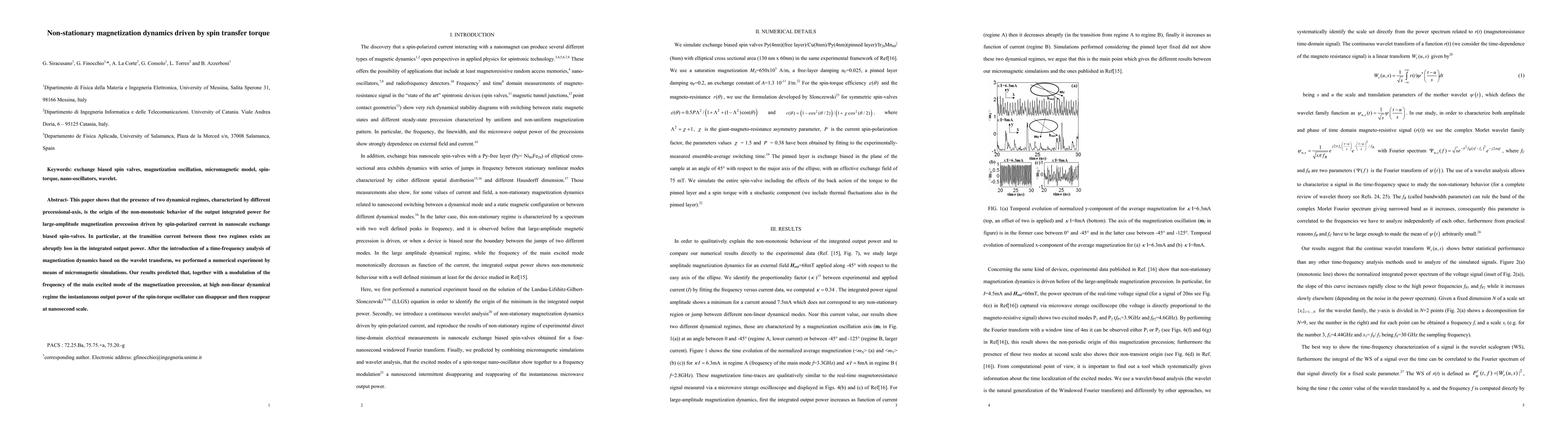 The work combines micromagnetic simulations with time-frequency analysis using wavelet transforms to provide a comprehensive understanding of the transient dynamics in magnetization switching processes and the existence of persistent but non-periodic current-driven magnetic states.