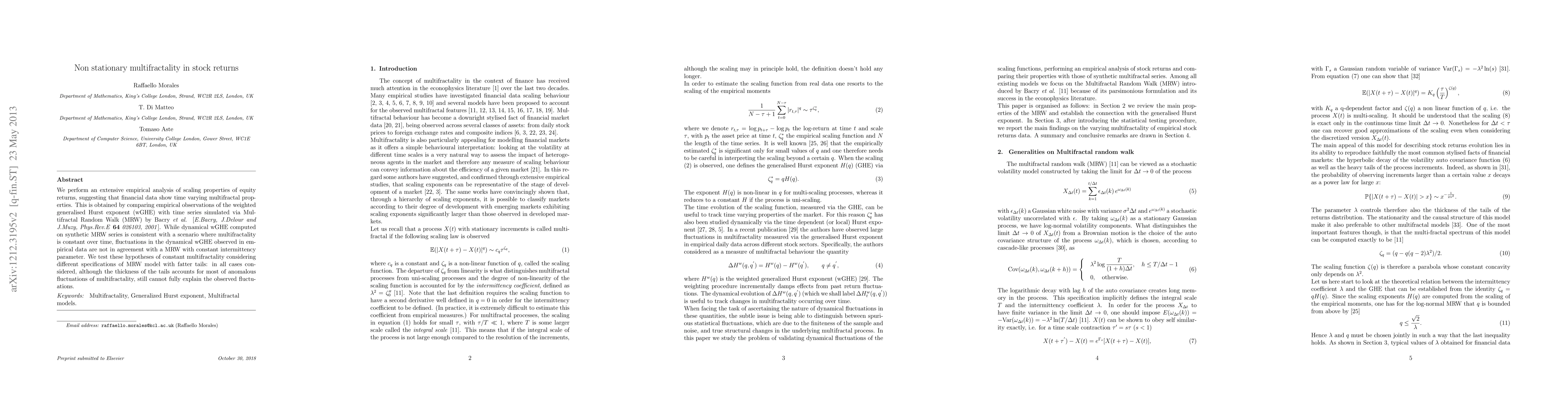 This research paper analyzes stock returns for non-stationary multifractal properties, suggesting that financial data exhibit time-varying scaling properties. The findings contradict the Multifractal Random Walk model with constant intermittency parameter.
