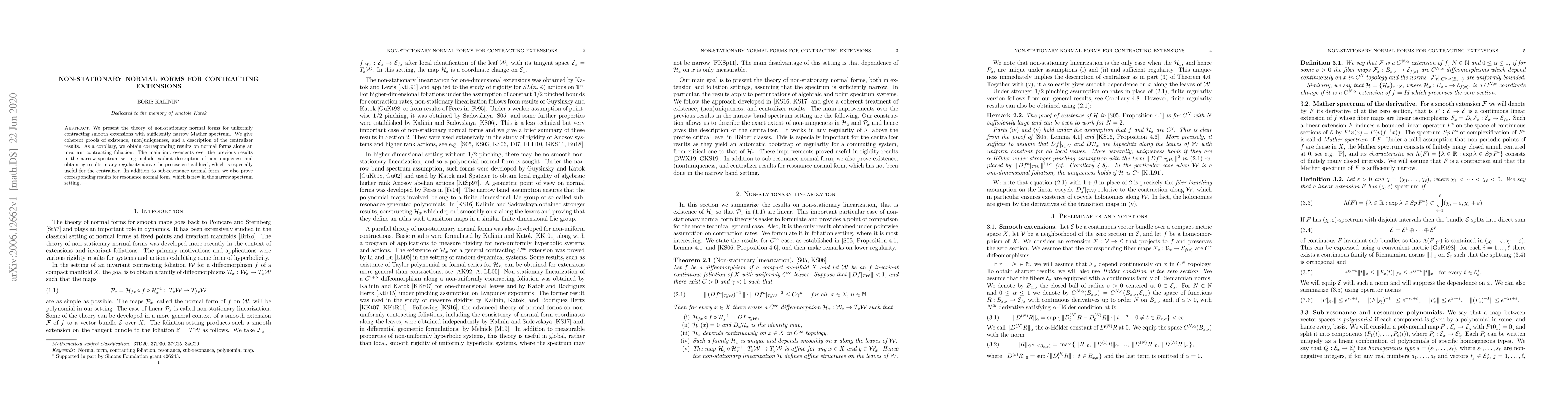 Researchers develop a new theory for non-stationary normal forms in contracting extensions, improving upon previous results with explicit descriptions of uniqueness and broader applicability to resonance normal form.