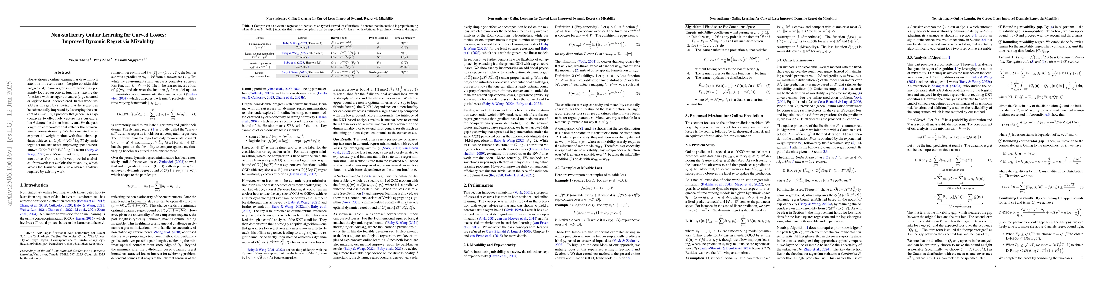 Researchers developed an online learning method that improves dynamic regret for non-stationary curved losses using mixability, achieving a near-optimal O(dT^(1/3)PT^(2/3) log T) regret.