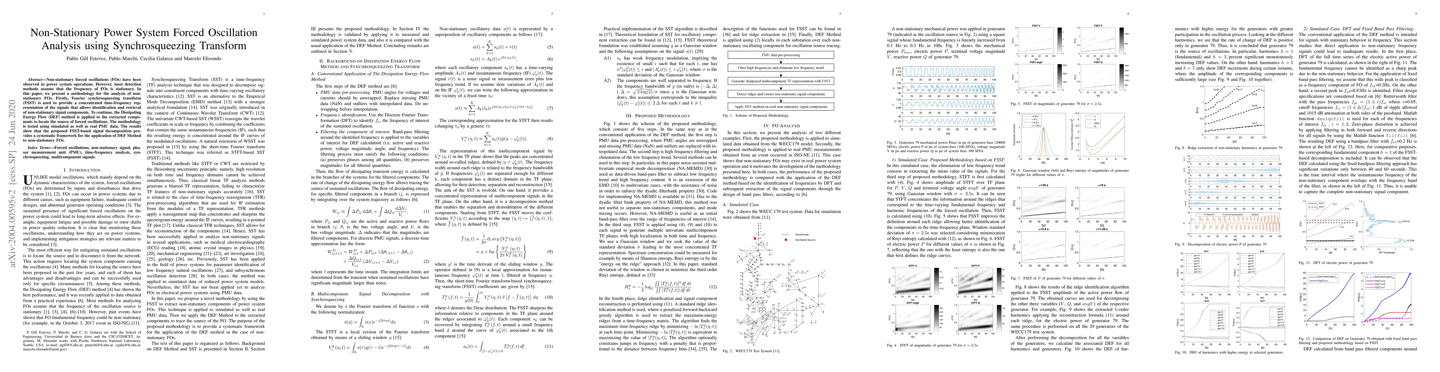 This paper proposes a methodology using Fourier synchrosqueezing transform (FSST) to analyze non-stationary forced oscillations in power systems, providing a time-frequency representation for signal components. The Dissipating Energy Flow (DEF) method is then applied to locate the source of oscillations, validated with both simulated and real data.