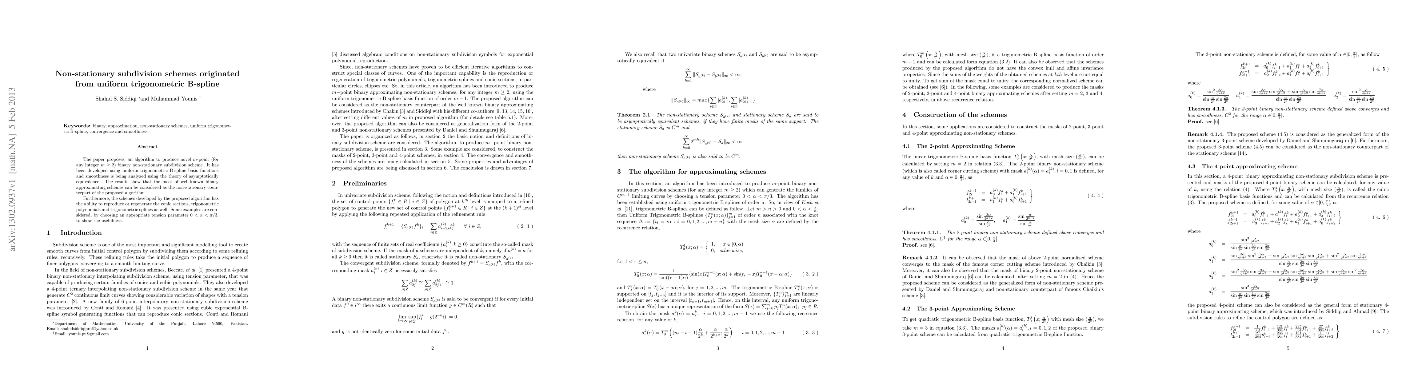The paper introduces an algorithm for generating m-point binary non-stationary subdivision schemes based on uniform trigonometric B-splines, analyzing smoothness via asymptotic equivalence. It demonstrates that many known binary approximating schemes can be seen as non-stationary counterparts, and the proposed schemes can reproduce conic sections, trigonometric polynomials, and trigonometric splines.
