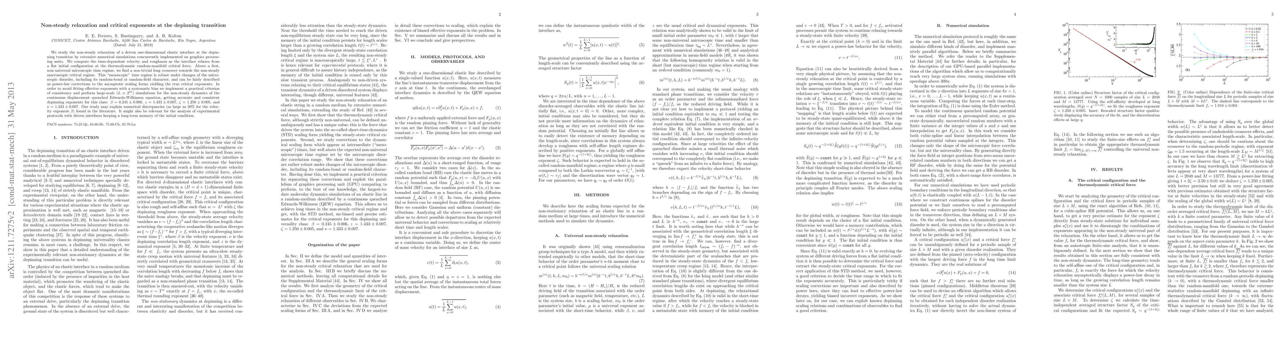 This paper investigates the non-steady relaxation and critical exponents at the depinning transition of a driven elastic interface via extensive GPU simulations. It identifies a robust "mesoscopic" time-regime and accurately determines critical exponents, resolving previous numerical discrepancies.