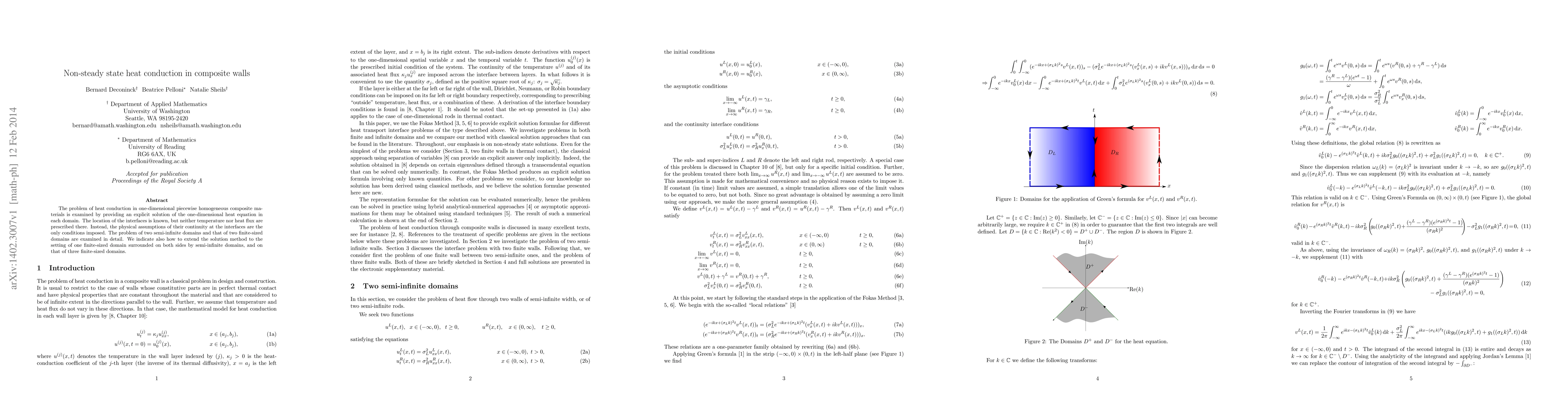 This research provides an explicit solution for non-steady state heat conduction in composite walls using one-dimensional heat equations, with continuity conditions at interfaces. It covers solutions for two semi-infinite and two finite-sized domains, and extends the method to more complex configurations.
