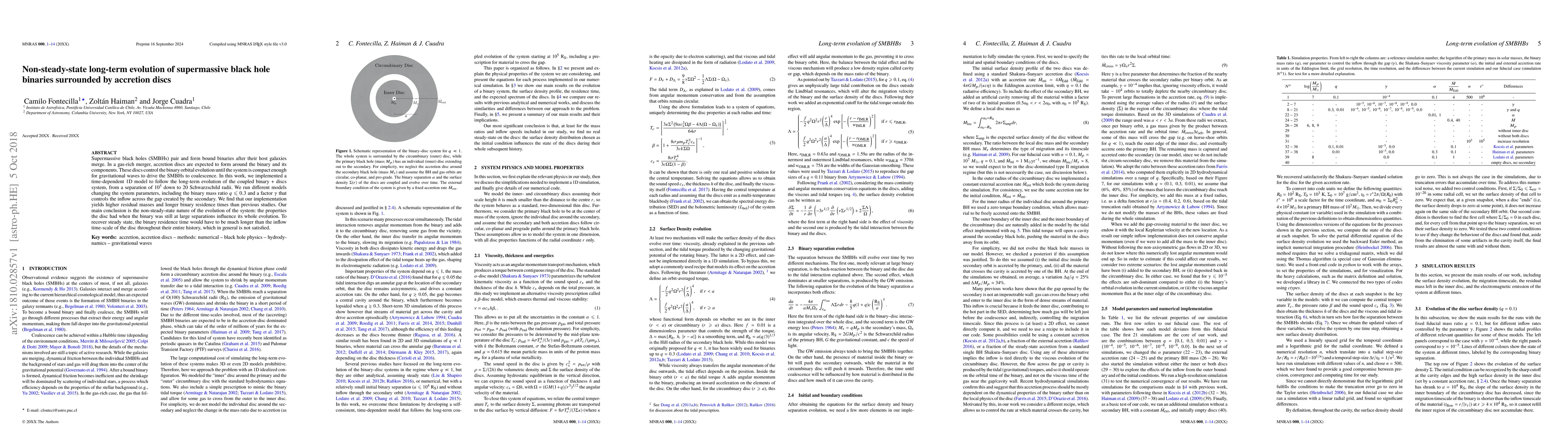 Supermassive black holes (SMBHs) pair and form bound binaries after their host galaxies merge. In a gas-rich merger, accretion discs are expected to form around the binary and its components. These discs control the binary orbital evolution until the system is compact enough for gravitational waves to drive the SMBHs to coalescence. In this work, we implemented a time-dependent 1D model to follow the long-term evolution of the coupled binary + discs system, from a separation of 10^5 down to 20 Schwarzschild radii. We run different models changing the system parameters, including the binary mass ratio q \leq 0.3 and a factor {\gamma} that controls the inflow across the gap created by the secondary. We find that our implementation yields higher residual masses and longer binary residence times than previous studies. Our main conclusion is the non-steady-state nature of the evolution of the system: the properties the disc had when the binary was still at large separations influence its whole evolution. To recover steady state, the binary residence time would have to be much longer than the inflow time-scale of the disc throughout their entire history, which in general is not satisfied.