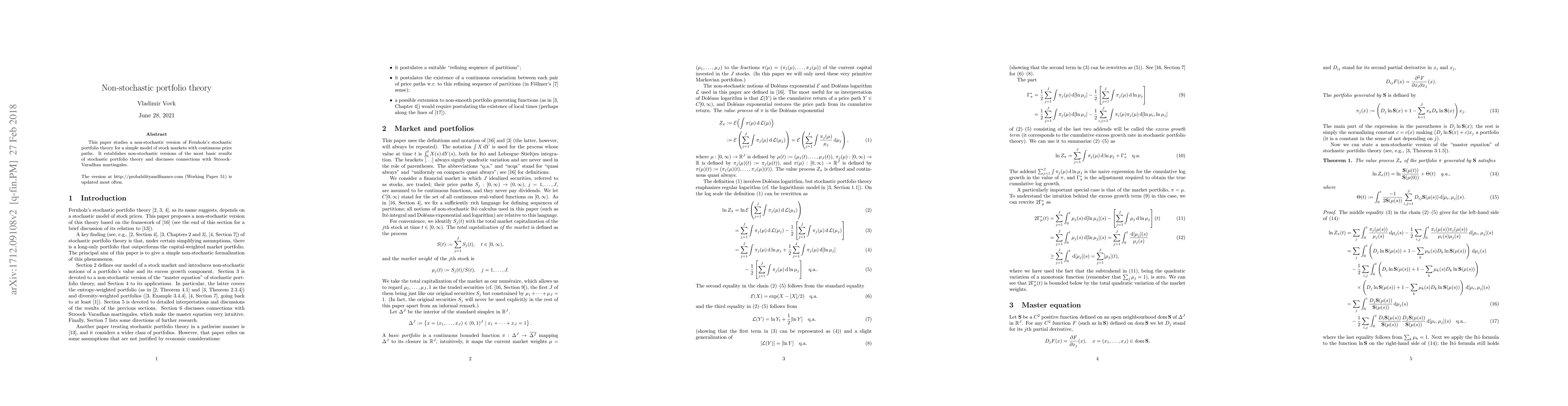 This paper studies a non-stochastic version of Fernholz's stochastic portfolio theory for a simple model of stock markets with continuous price paths. It establishes non-stochastic versions of the most basic results of stochastic portfolio theory and discusses connections with Stroock-Varadhan martingales.