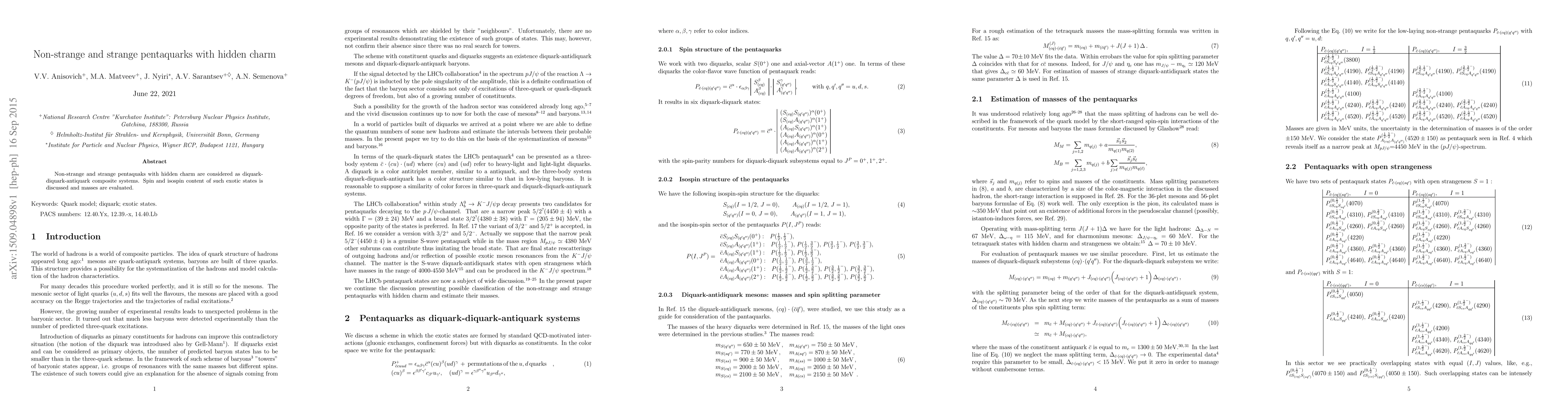 This paper investigates non-strange and strange pentaquarks with hidden charm, modeling them as diquark-diquark-antiquark systems. It evaluates their masses and discusses their spin and isospin properties.