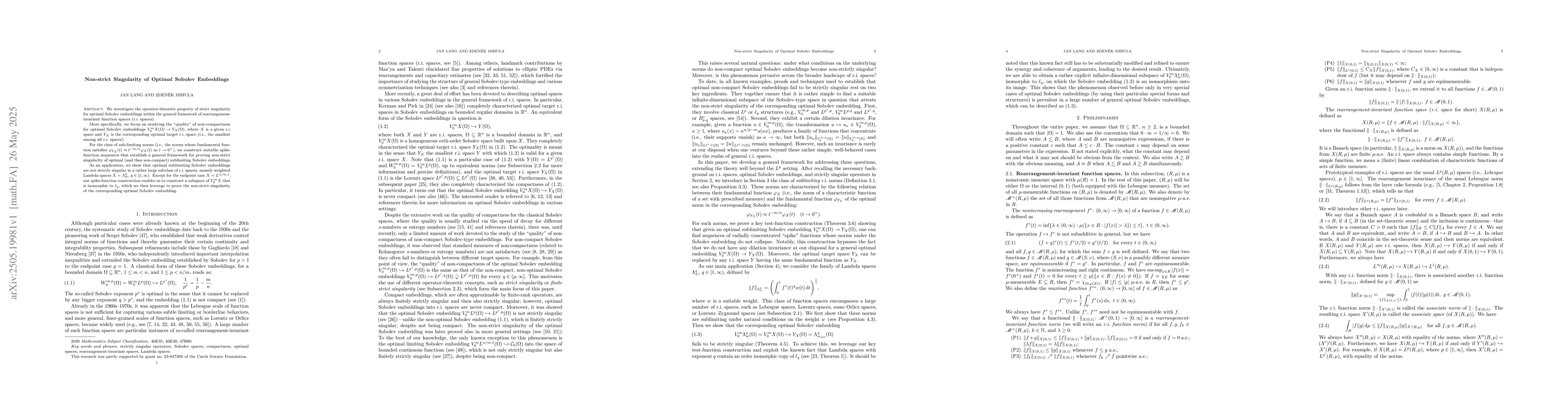Researchers investigate optimal Sobolev embeddings for rearrangement-invariant function spaces, showing that non-compact embeddings can be non-strictly singular in certain cases.