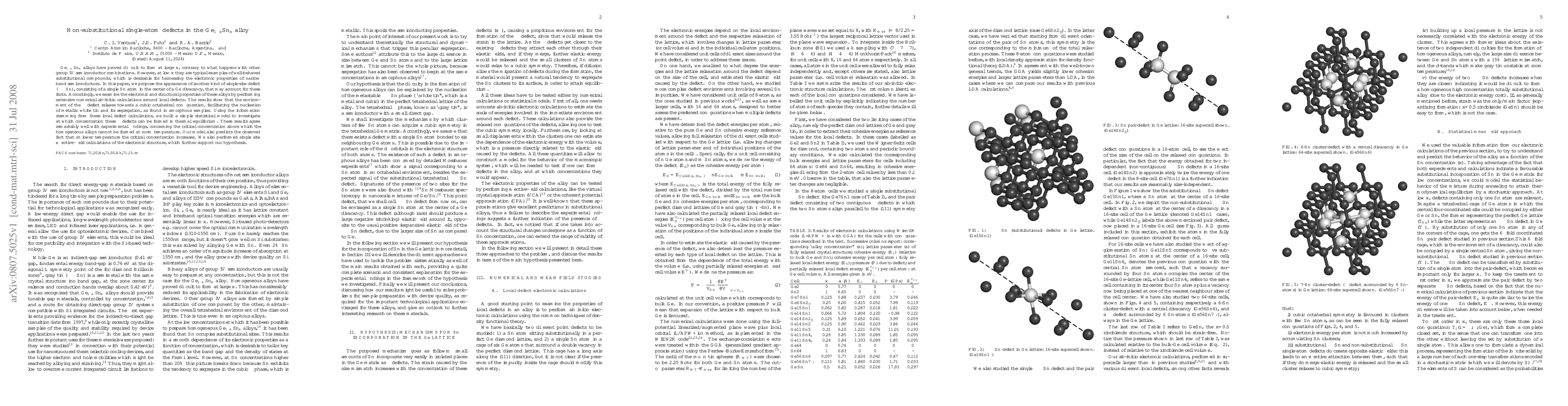 Ge_(1-x)Sn_x alloys have proved difficult to form at large x, contrary to what happens with other group IV semiconductor combinations. However, at low x they are typical examples of well-behaved substitutional compounds, which is desirable for harnessing the electronic properties of narrow band semiconductors. In this paper, we propose the appearance of another kind of single-site defect ($\beta-Sn$), consisting of a single Sn atom in the center of a Ge divacancy, that may account for these facts. Accordingly, we examine the electronic and structural properties of these alloys by performing extensive numerical ab-initio calculations around local defects. The results show that the environment of the $\beta$ defect relaxes towards a cubic octahedral configuration, facilitating the nucleation of metallic white tin and its segregation, as found in amorphous samples. Using the information stemming from these local defect calculations, we built a simple statistical model to investigate at which concentration these $\beta$ defects can be formed in thermal equilibrium. These results agree remarkably well with experimental findings, concerning the critical concentration above which the homogeneous alloys cannot be formed at room temperature. Our model also predicts the observed fact that at lower temperature the critical concentration increases. We also performed single site effective-field calculations of the electronic structure, which further support our hypothesis.
