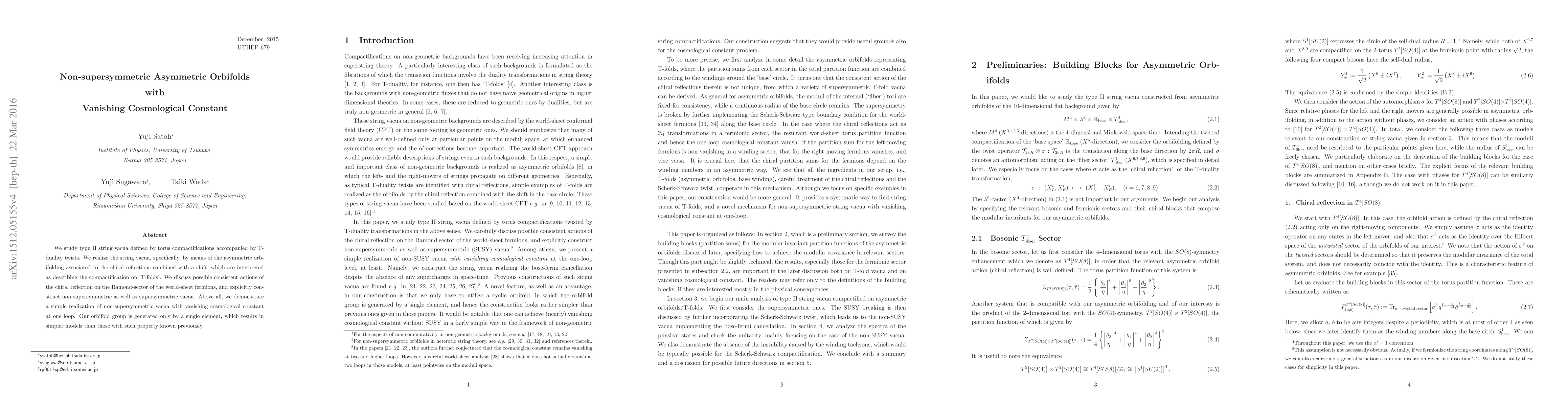 This paper explores type II string vacua using asymmetric orbifold constructions with T-duality twists, leading to non-supersymmetric models with a vanishing cosmological constant. The study focuses on simplified models generated by a single orbifold group element, demonstrating a concrete realization at the one-loop level.