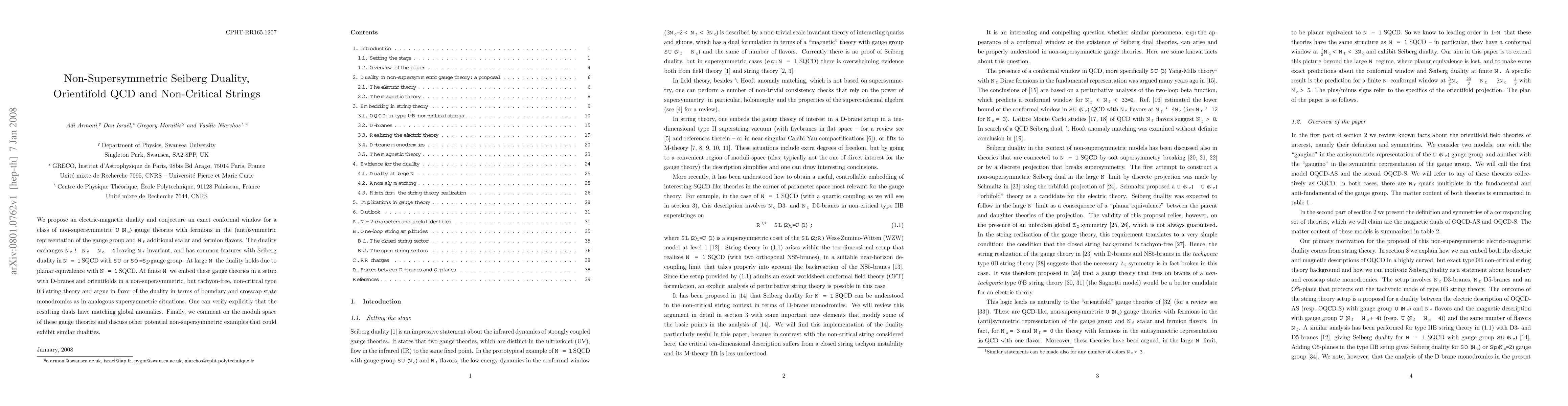This paper proposes an electric-magnetic duality for non-supersymmetric U(N_c) gauge theories, conjectures an exact conformal window, and links the duality to Seiberg duality through brane configurations in non-critical type 0B string theory, verifying anomaly matching. It also explores potential other non-supersymmetric examples with similar dualities.