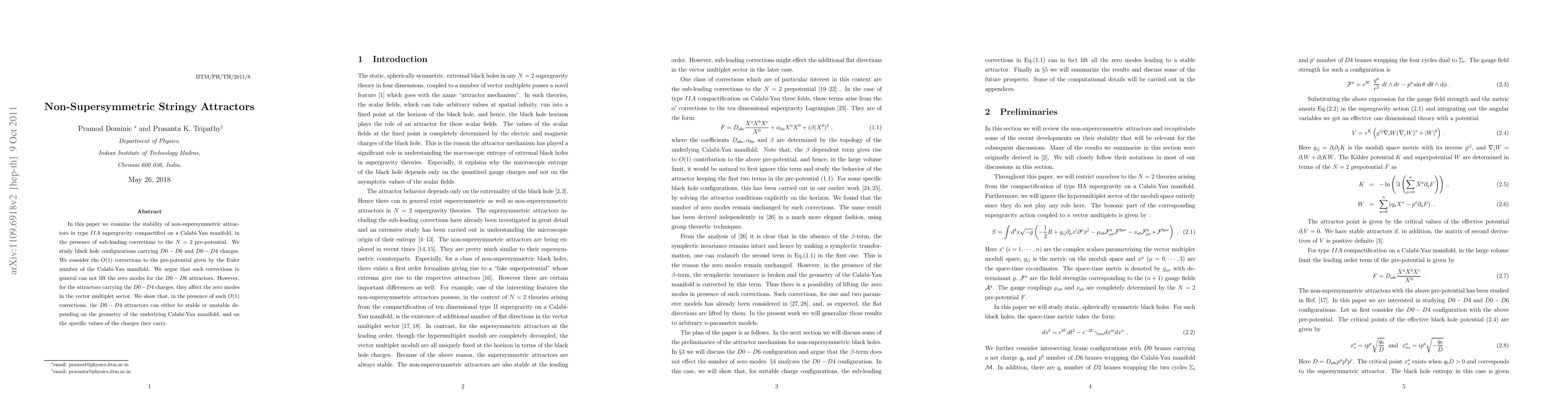 This paper investigates the stability of non-supersymmetric stringy attractors in type IIA supergravity compactified on Calabi-Yau manifolds, focusing on O(1) corrections to the pre-potential. It finds that while these corrections do not affect D0-D6 attractors, they can stabilize or destabilize D0-D4 attractors depending on the manifold's geometry and the charges involved.