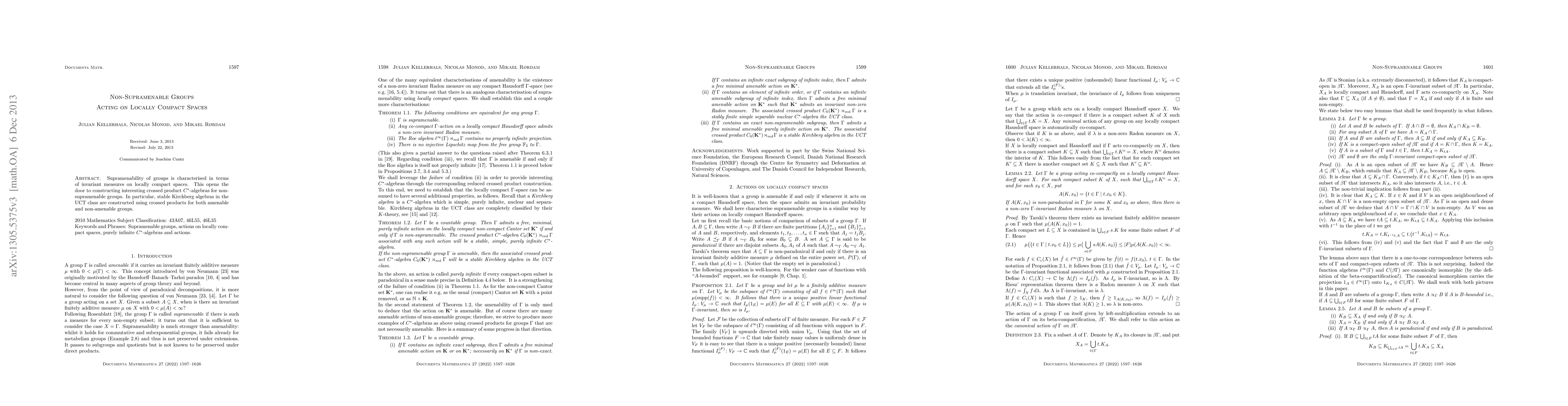This research explores supramenability in groups, focusing on invariant measures on locally compact spaces, and constructs crossed product C*-algebras for non-supramenable groups, particularly generating stable Kirchberg algebras in the UCT class for both amenable and non-amenable groups.
