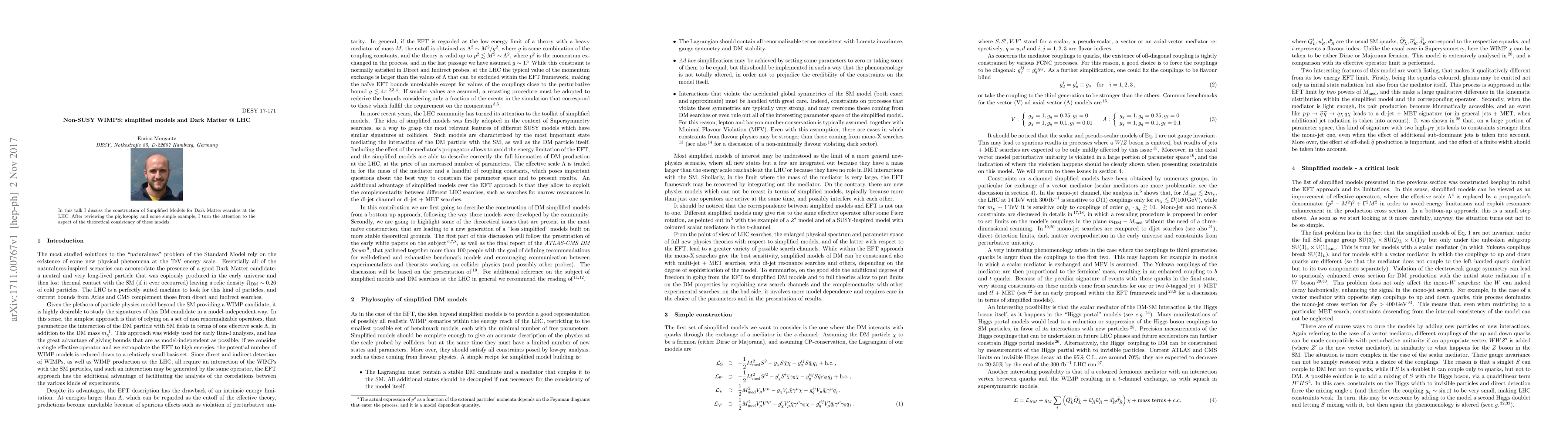 This paper explores Simplified Models for Dark Matter (WIMPs) searches at the LHC, emphasizing theoretical consistency. It reviews the philosophy and provides examples, focusing on non-supersymmetric models.