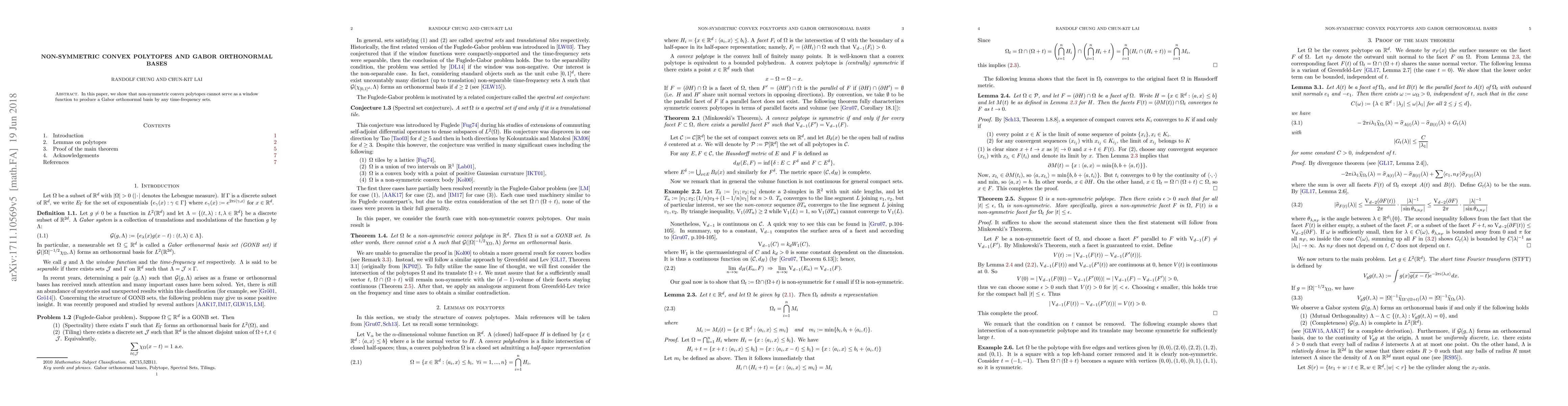 In this paper, we show that the non-symmetric convex polytope cannot be served as a window function to produce a Gabor orthonormal basis by any time-frequency sets.