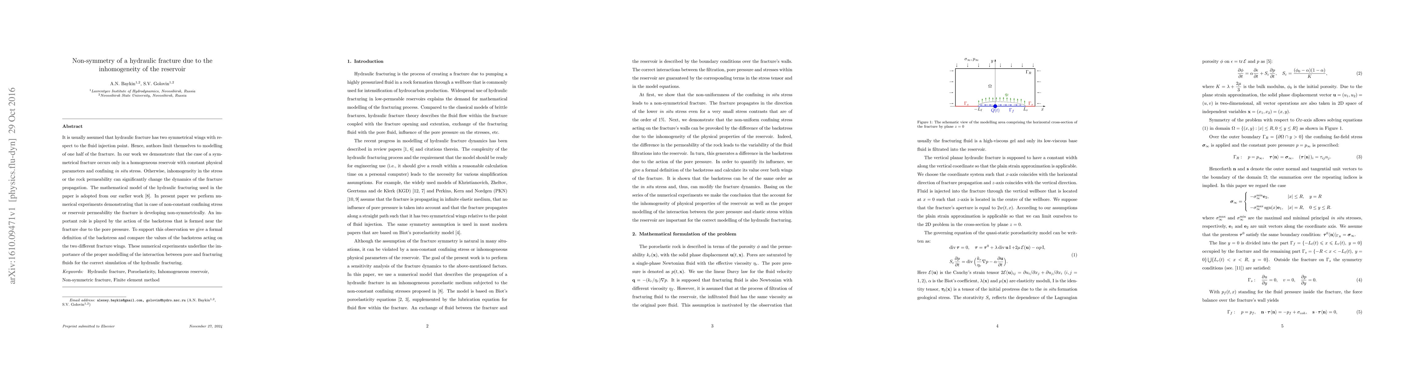This paper demonstrates that hydraulic fractures typically exhibit non-symmetrical wings due to reservoir inhomogeneities, challenging the assumption of symmetry. Numerical experiments show that variations in stress or permeability lead to non-uniform fracture propagation, emphasizing the need for accurate modelling of fluid interactions.