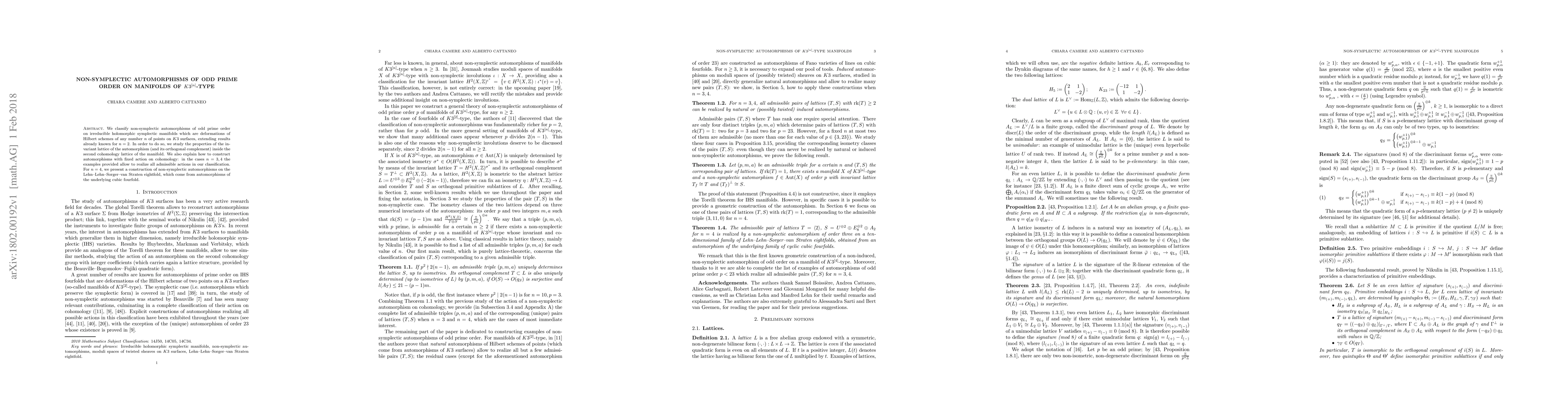 Summary: The paper classifies non-symplectic automorphisms of odd prime order on $K3^{[n]}$-type manifolds, extending previous results for $n=2$. It explores the invariant lattice of such automorphisms and provides constructions for specific cases, notably realizing all admissible actions for $n=3,4$ and presenting a construction for $n=4$ on the Lehn-Lehn-Sorger-van Straten eightfold.