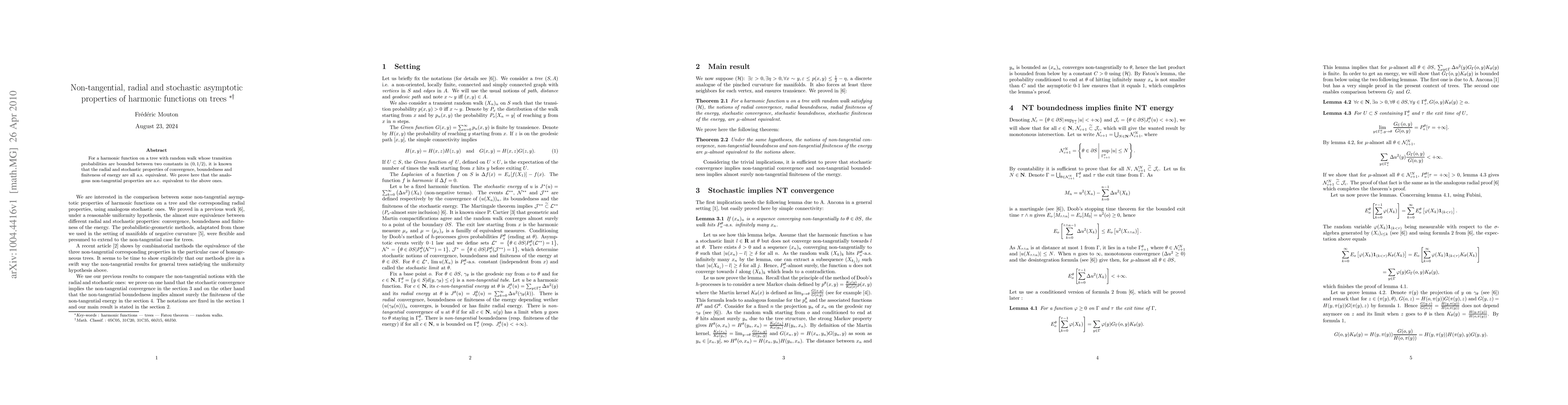 For a harmonic function on a tree with random walk whose transition probabilities are bounded between two constants in (0,1/2), it is known that the radial and stochastic properties of convergence, boundedness and finiteness of energy are all a.s. equivalent. We prove here that the analogous non-tangential properties are a.e. equivalent to the above ones.