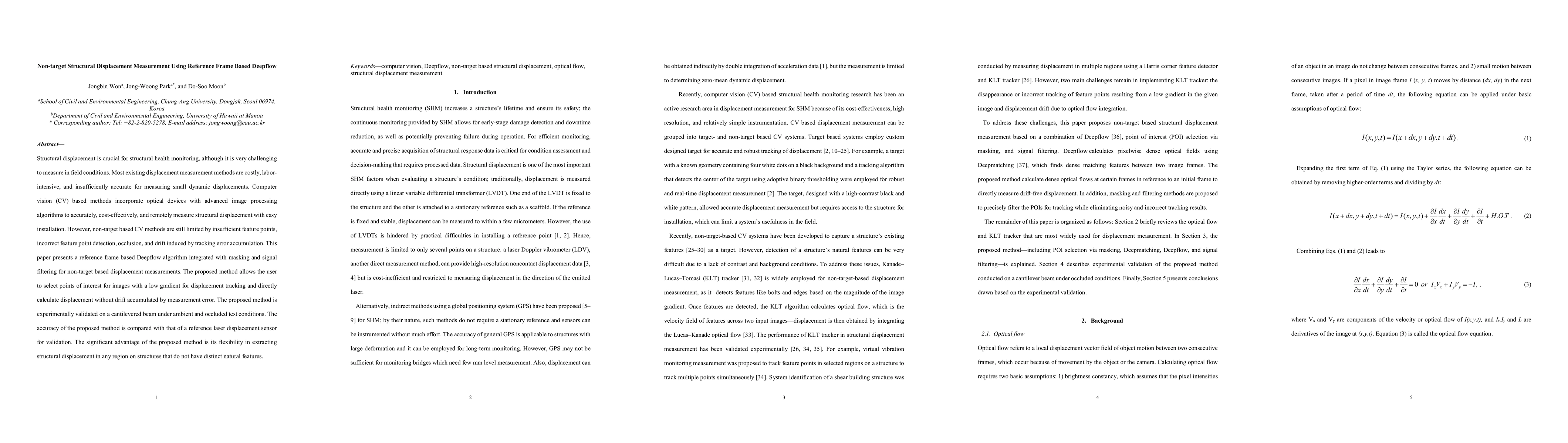 This paper proposes a reference frame based Deepflow algorithm for non-target structural displacement measurement, addressing issues like insufficient feature points and tracking errors. Experimental validation on a cantilevered beam shows its accuracy compared to a laser displacement sensor, highlighting its flexibility in tracking regions without distinct natural features.