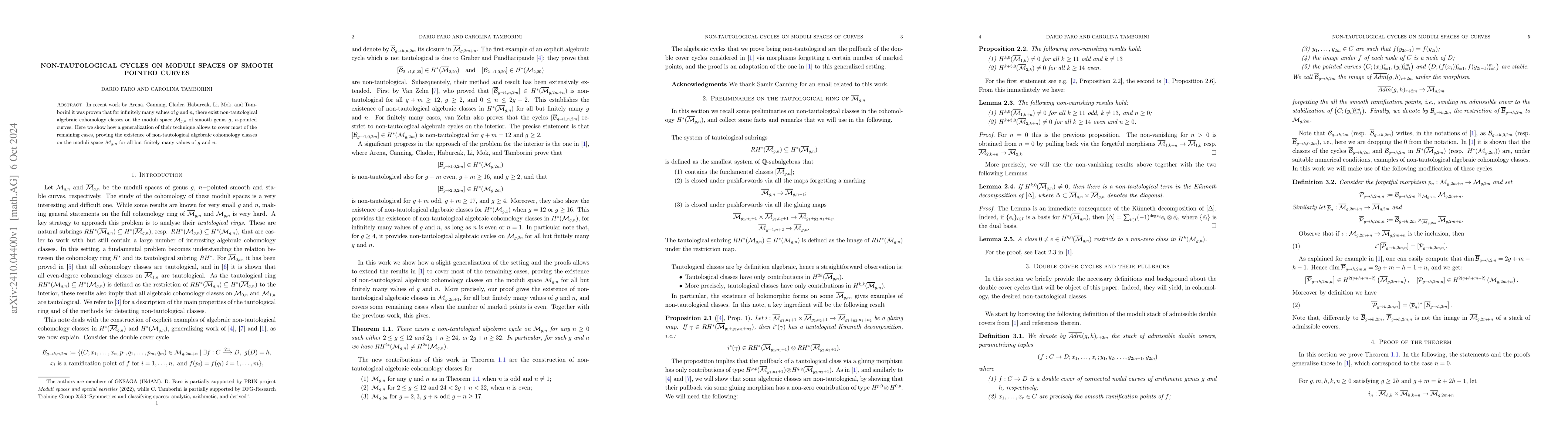 In recent work by Arena, Canning, Clader, Haburcak, Li, Mok, and Tamborini it was proven that for infinitely many values of $g$ and $n$, there exist non-tautological algebraic cohomology classes on the moduli space $\mathcal{M}_{g,n}$ of smooth genus $g$, $n$-pointed curves. Here we show how a generalization of their technique allows to cover most of the remaining cases, proving the existence of non-tautological algebraic cohomology classes on the moduli space $\mathcal{M}_{g,n}$ for all but finitely many values of $g$ and $n$.
