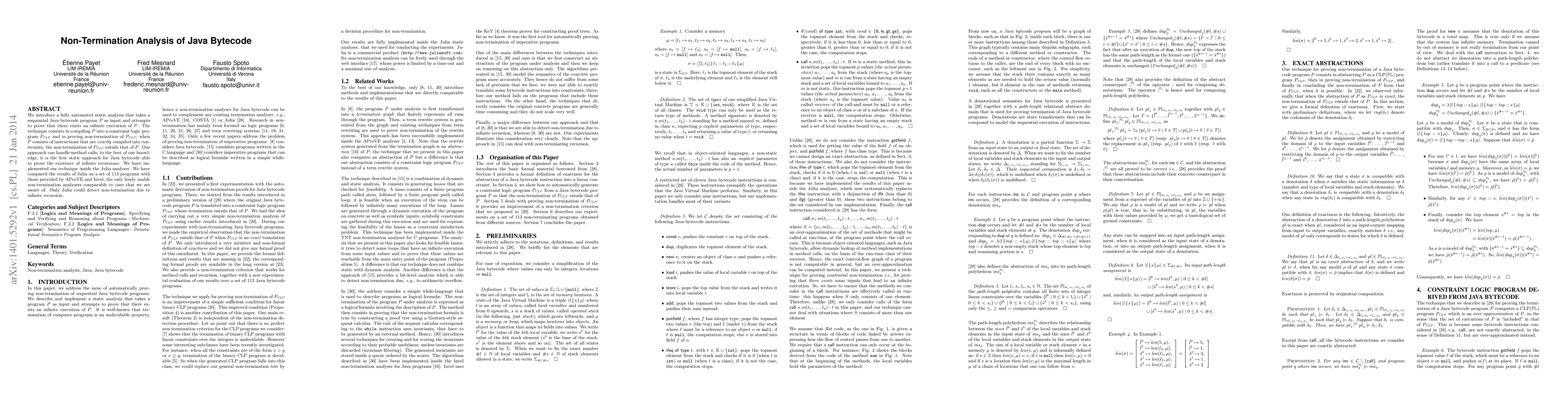 This paper presents a novel static analysis tool, Julia, for proving non-termination in Java bytecode programs by transforming them into constraint logic programs. Unlike existing tools, Julia can detect infinite recursions, as demonstrated through a comparison with AProVE and Invel on 113 programs.