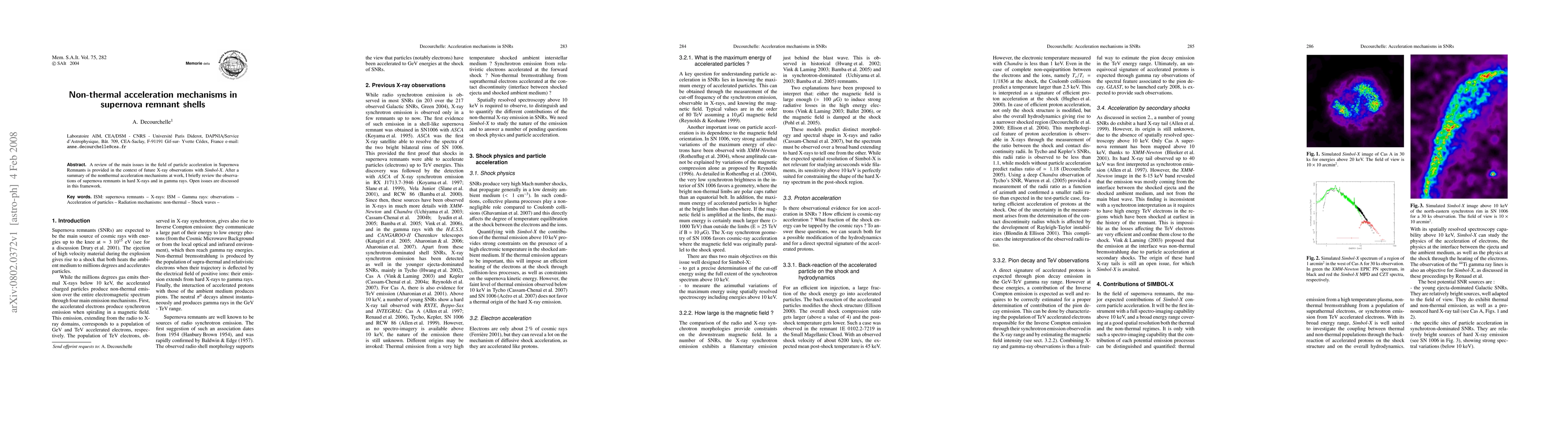This paper reviews particle acceleration mechanisms in supernova remnants, focusing on non-thermal processes in anticipation of future X-ray observations. It discusses unresolved issues and the potential of Simbol-X for hard X-ray and gamma-ray observations.