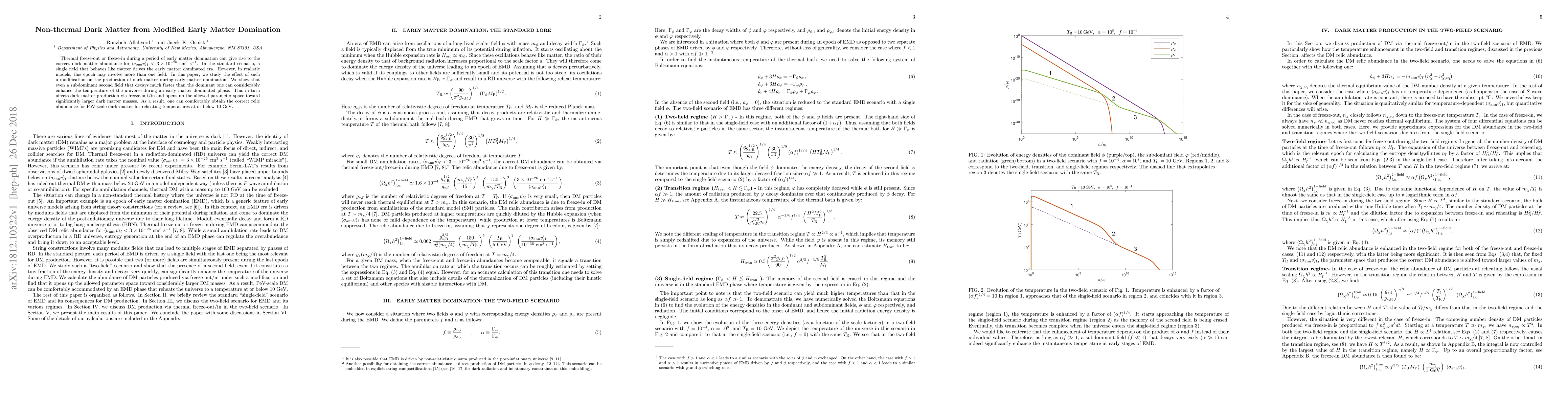 This paper explores how modified early matter domination involving multiple fields can enhance dark matter production, allowing for the correct relic abundance even for PeV-scale dark matter masses, given reheating temperatures as low as 10 GeV. The presence of a subdominant second field can significantly increase the universe's temperature during early matter domination, expanding the viable parameter space for dark matter.
