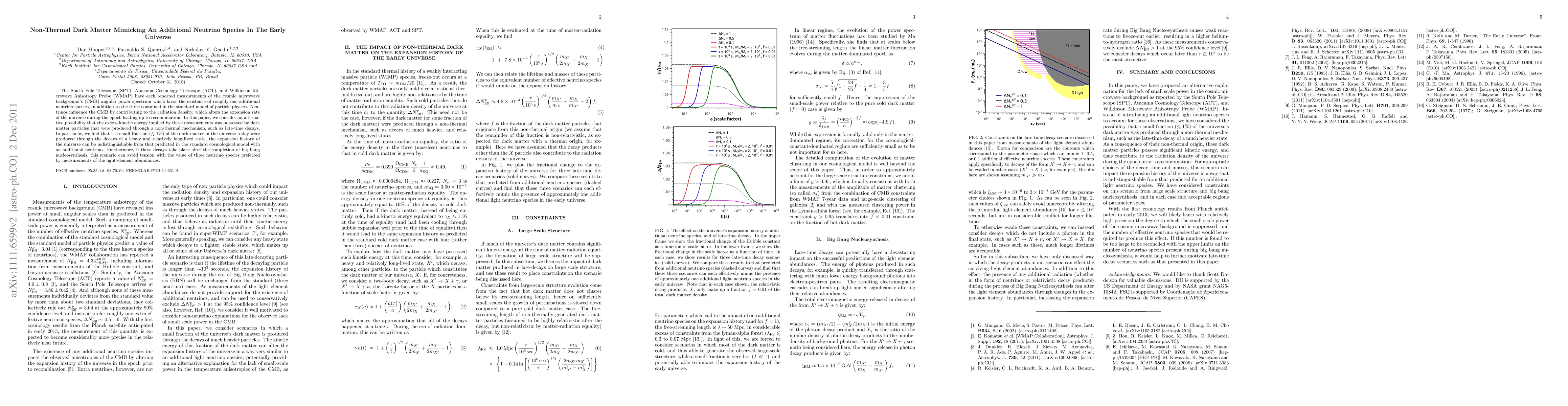 This paper explores the possibility that non-thermal dark matter, produced through late-time decays, could mimic the effects of an additional neutrino species in the early universe, as suggested by CMB measurements. It concludes that such dark matter could replicate the expansion history of the universe without contradicting established models or light element abundances.