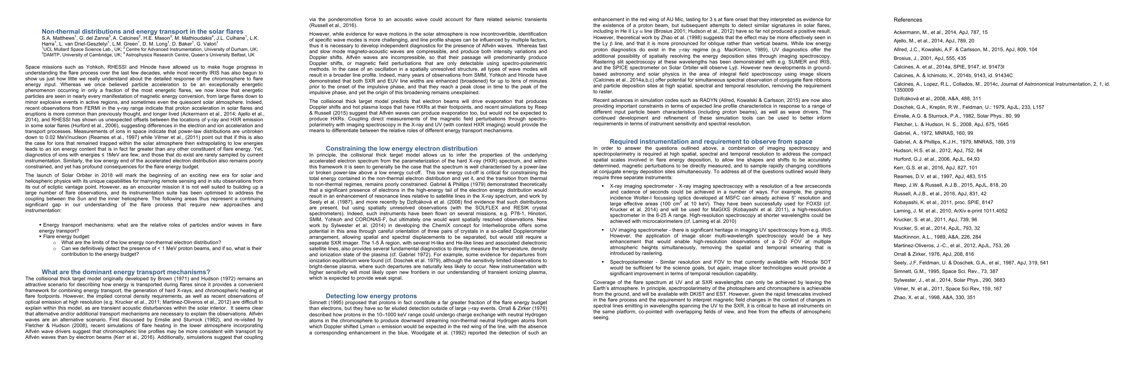 Determining the energy transport mechanisms in flares remains a central goal in solar flares physics that is still not adequately answered by the 'standard flare model'. In particular, the relative roles of particles and/or waves as transport mechanisms, the contributions of low energy protons and ions to the overall flare budget, and the limits of low energy non-thermal electron distribution are questions that still cannot be adequately reconciled with current instrumentation. In this 'White Paper' submitted in response to the call for inputs to the Next Generation Solar Physics Mission review process initiated by JAXA, NASA and ESA in 2016, we outline the open questions in this area and possible instrumentation that could provide the required observations to help answer these and other flare-related questions.