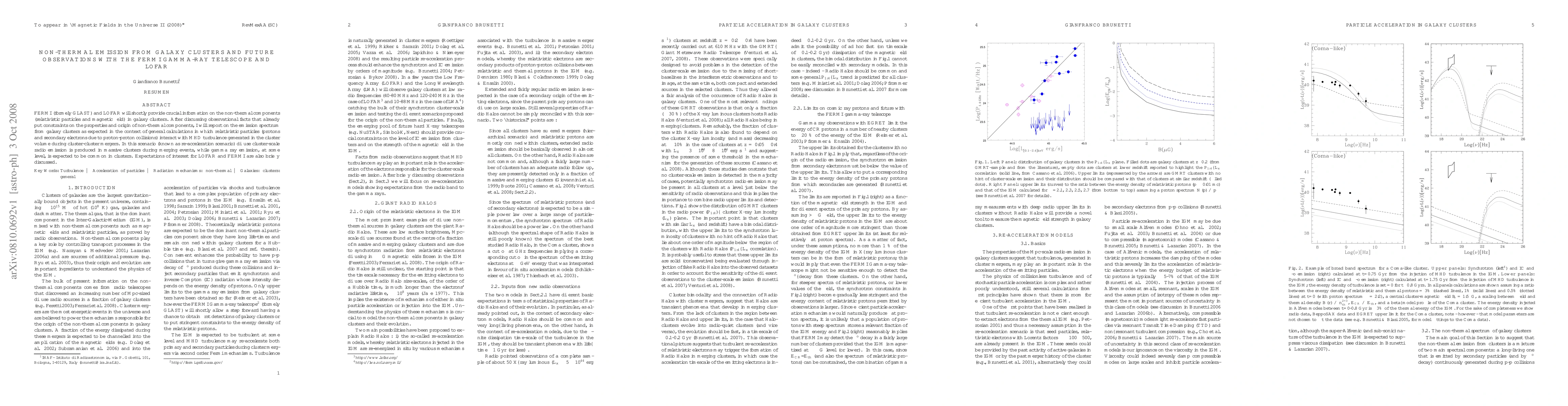 This paper discusses the upcoming contributions from FERMI and LOFAR in studying non-thermal emissions from galaxy clusters, focusing on the interactions of relativistic particles and magnetic fields during cluster mergers. It outlines the expected emission spectra and the implications for understanding the re-acceleration scenario in massive clusters.