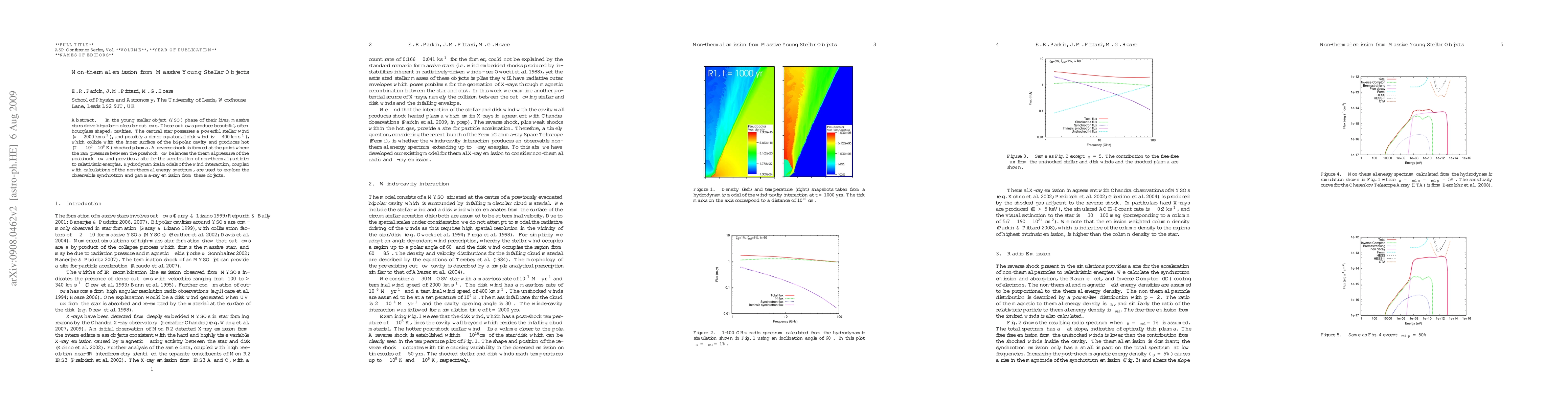 In the young stellar object (YSO) phase of their lives, massive stars drive bi-polar molecular outflows. These outflows produce beautiful, often hourglass shaped, cavities. The central star possesses a powerful stellar wind (v ~ 2000 km s^-1), and possibly a dense equatorial disk wind (v ~ 400 km s^-1), which collide with the inner surface of the bi-polar cavity and produces hot (T ~ 10^5 - 10^8 K) shocked plasma. A reverse shock is formed at the point where the ram pressure between the preshock flow balances the thermal pressure of the postshock flow and provides a site for the acceleration of non-thermal particles to relativistic energies. Hydrodynamical models of the wind interaction, coupled with calculations of the non-thermal energy spectrum, are used to explore the observable synchrotron and gamma-ray emission from these objects.
