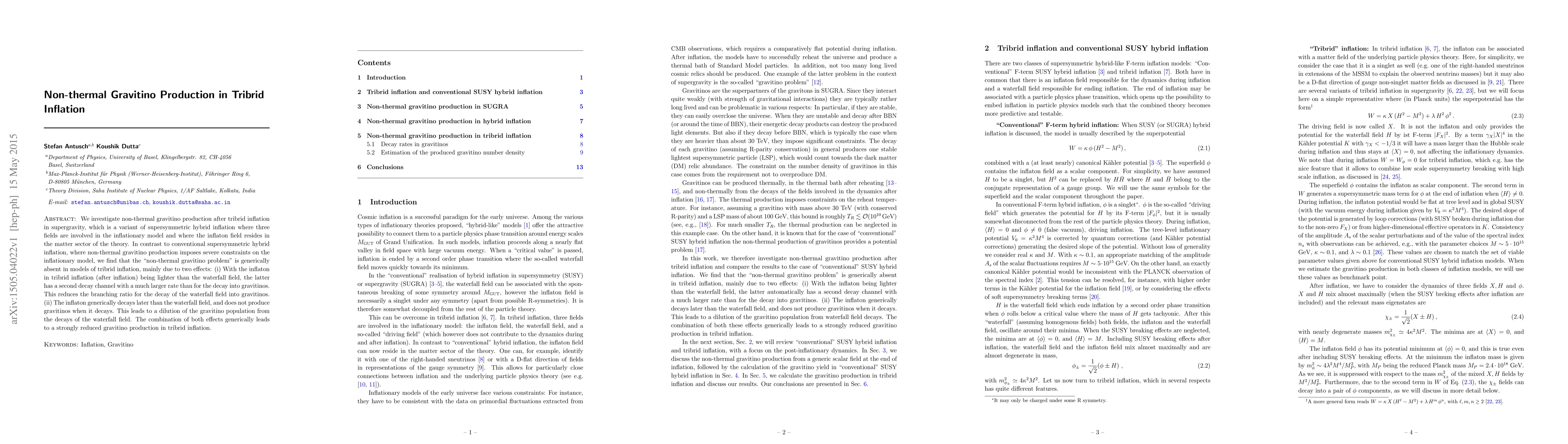This paper explores non-thermal gravitino production in tribrid inflation, finding that the "non-thermal gravitino problem" is typically absent due to the lighter inflaton and delayed decay of the inflaton, which reduces gravitino production.