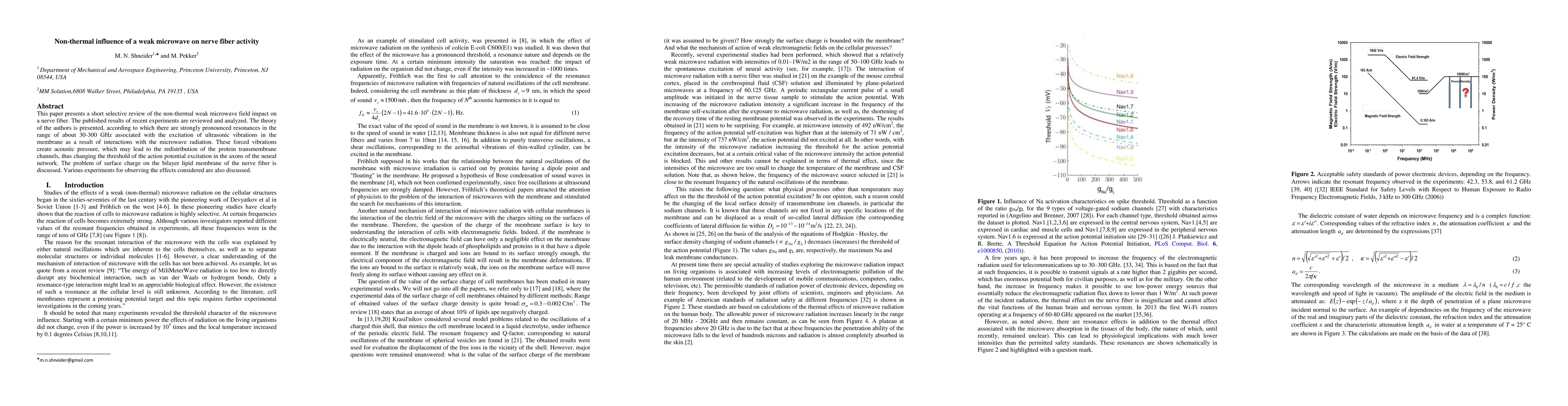 This paper reviews the non-thermal effects of weak microwave fields on nerve fibers, proposing that resonances in the 30-300 GHz range induce ultrasonic vibrations in the membrane, altering protein channels and action potential thresholds. Experiments are discussed to observe these effects, focusing on the role of surface charge on the nerve fiber's lipid membrane.