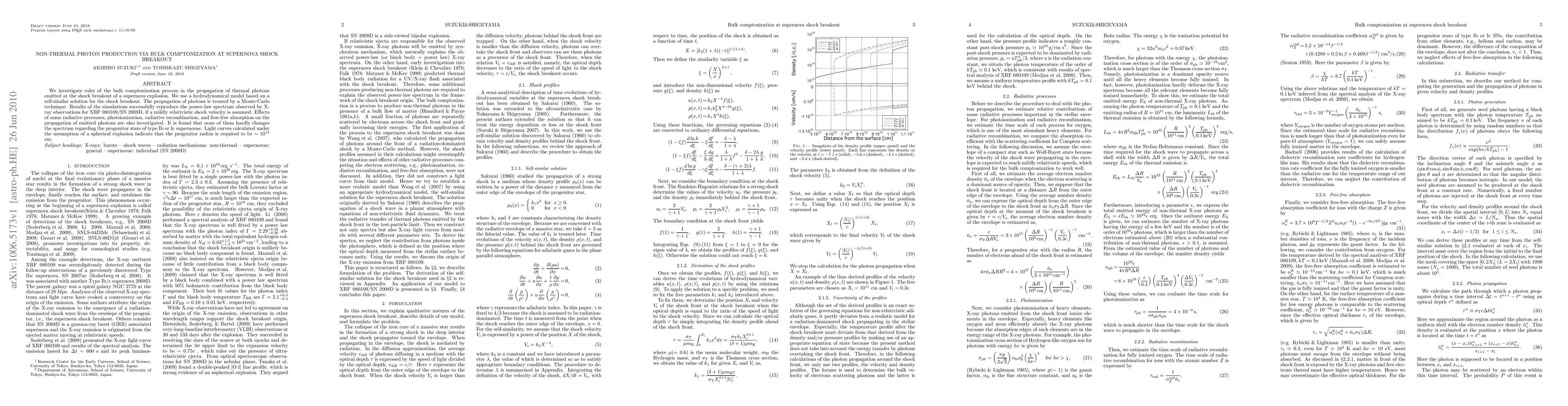 This paper explores the bulk comptonization process in supernova shock breakout, using a hydrodynamical model and Monte-Carlo simulations to reproduce the observed X-ray spectrum. It finds that mildly relativistic shock velocities and progenitor star radii of approximately $10^{13}$ cm are necessary for the results.