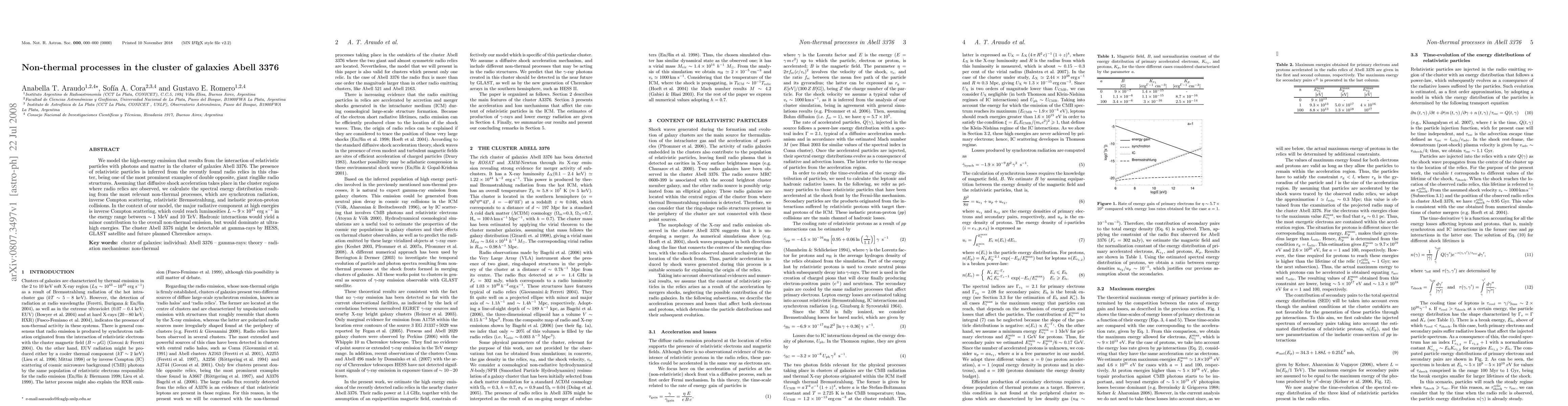 This paper models the high-energy emissions from relativistic particles in the galaxy cluster Abell 3376, focusing on non-thermal processes like synchrotron radiation and inverse Compton scattering. The study finds that inverse Compton scattering is the major radiative component, potentially detectable by gamma-ray observatories.