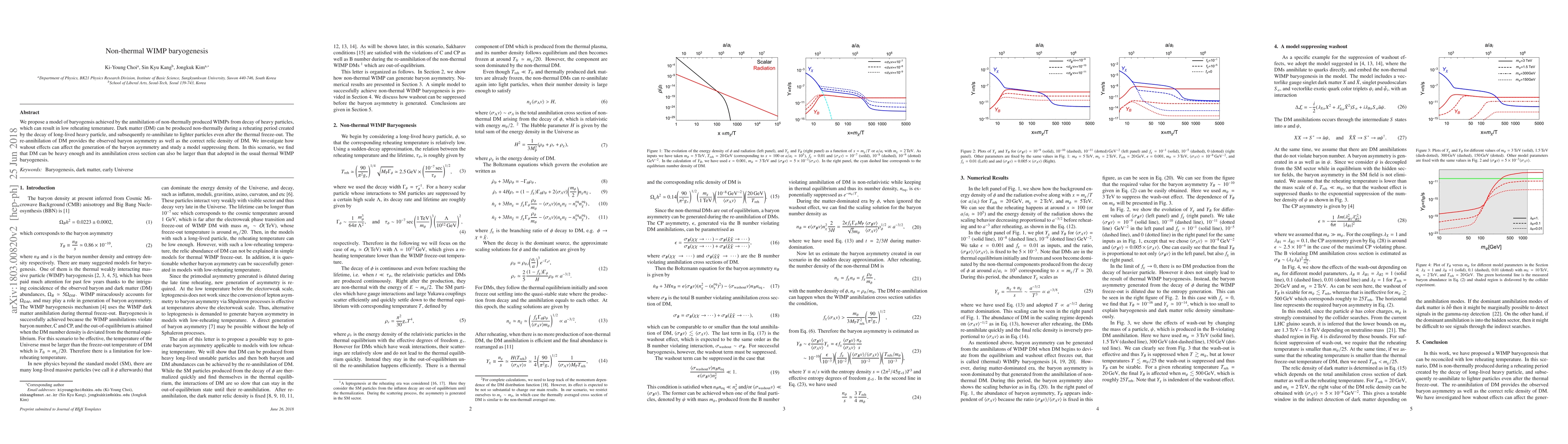 This paper proposes a non-thermal WIMP baryogenesis mechanism where dark matter is produced from the decay of heavy particles, leading to a low reheating temperature. The study explores how dark matter can re-annihilate post-thermal freeze-out to generate the observed baryon asymmetry and correct relic density.