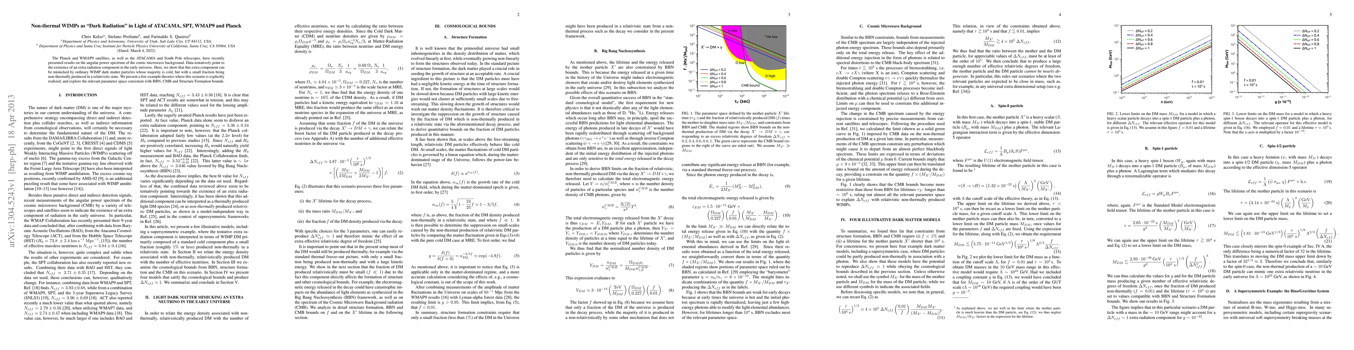 Summary: This paper explores the possibility that an extra radiation component in the early universe, suggested by recent satellite and telescope observations, could be explained by non-thermally produced, relativistic Weakly Interacting Massive Particles (WIMPs) instead of a new form of dark radiation. It discusses theoretical frameworks that accommodate this scenario and examines the parameter space consistent with Big Bang Nucleosynthesis, Cosmic Microwave Background, and structure formation constraints.