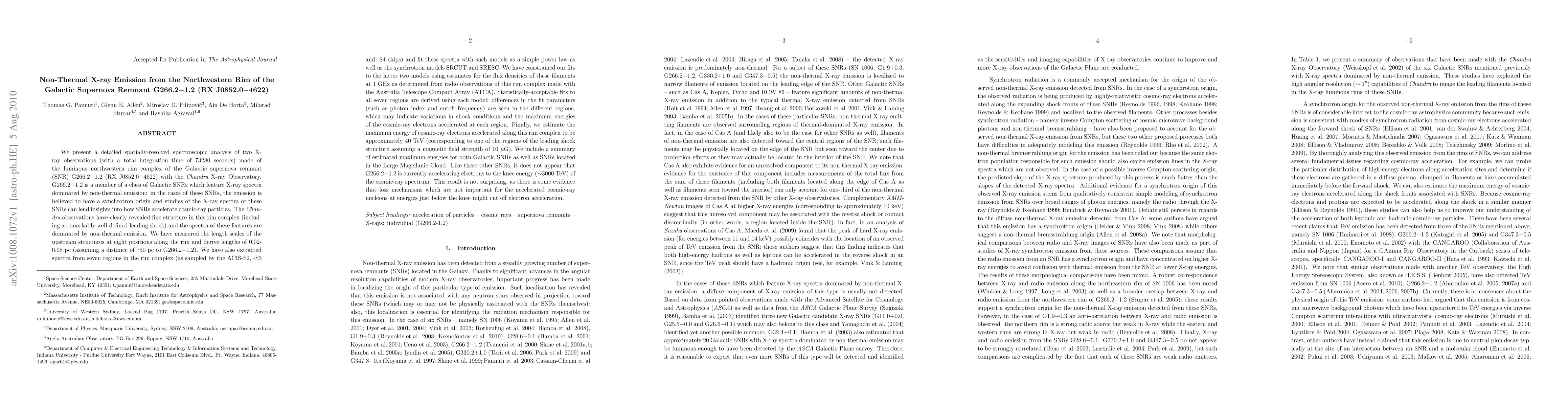 This study uses Chandra X-ray Observatory data to analyze the non-thermal X-ray emission from the northwestern rim of the Galactic supernova remnant G266.2-1.2, revealing synchrotron-dominated spectra and estimating cosmic-ray electron energies up to 40 TeV. Variations in fit parameters suggest differing shock conditions across the rim.