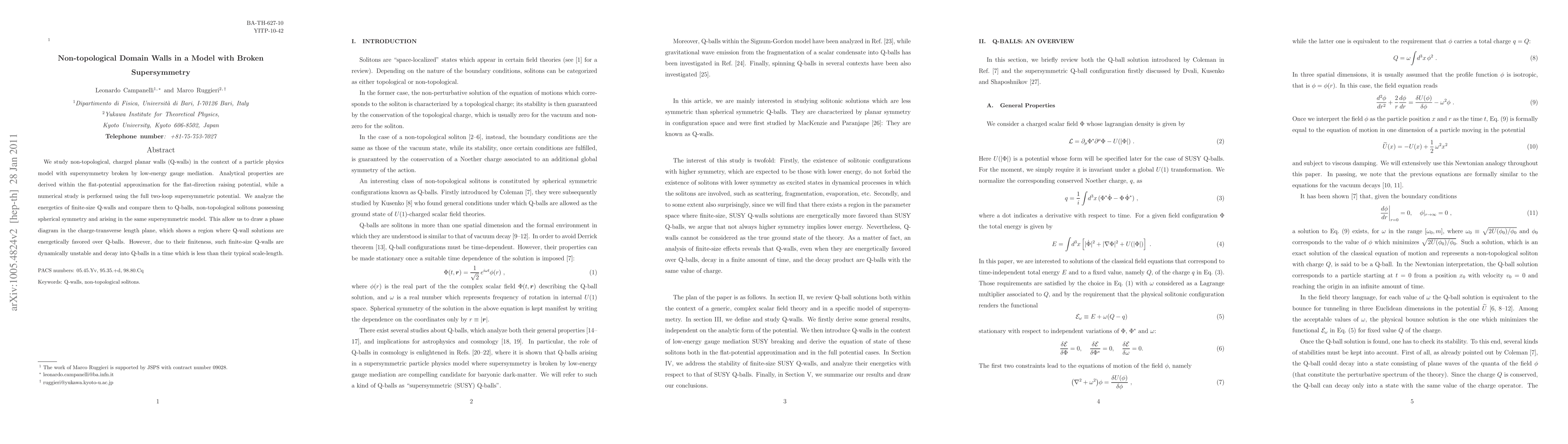 We study non-topological, charged planar walls (Q-walls) in the context of a particle physics model with supersymmetry broken by low-energy gauge mediation. Analytical properties are derived within the flat-potential approximation for the flat-direction raising potential, while a numerical study is performed using the full two-loop supersymmetric potential. We analyze the energetics of finite-size Q-walls and compare them to Q-balls, non-topological solitons possessing spherical symmetry and arising in the same supersymmetric model. This allow us to draw a phase diagram in the charge-transverse length plane, which shows a region where Q-wall solutions are more stable than Q-balls.