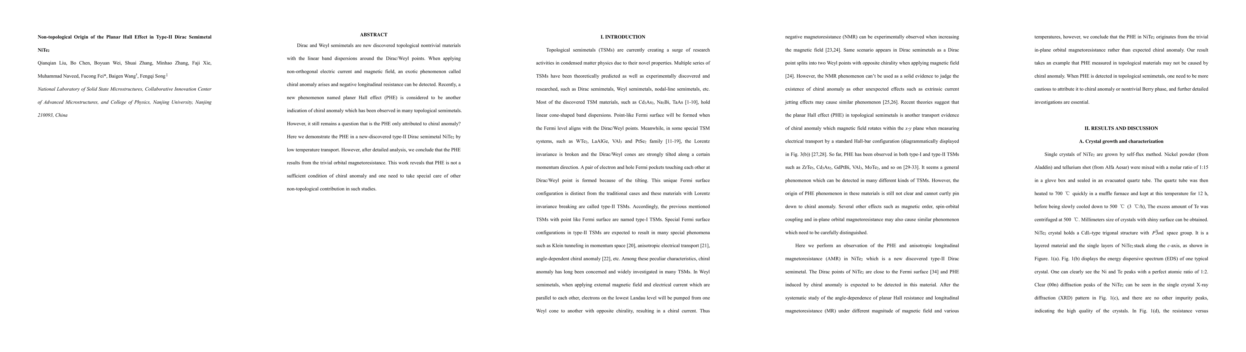 Dirac and Weyl semimetals are new discovered topological nontrivial materials with the linear band dispersions around the Dirac/Weyl points. When applying non-orthogonal electric current and magnetic field, an exotic phenomenon called chiral anomaly arises and negative longitudinal resistance can be detected. Recently, a new phenomenon named planer Hall effect (PHE) is considered to be another indication of chiral anomaly which has been observed in many topological semimetals. However, it still remains a question that is the PHE only attributed to chiral anomaly? Here we demonstrate the PHE in a new-discovered type-II Dirac semimetal NiTe2 by low temperature transport. However, after detailed analysis, we conclude that the PHE results from the trivial orbital magnetoresistance. This work reveals that PHE is not a sufficient condition of chiral anomaly and one need to take special care of other non-topological contribution in such studies.