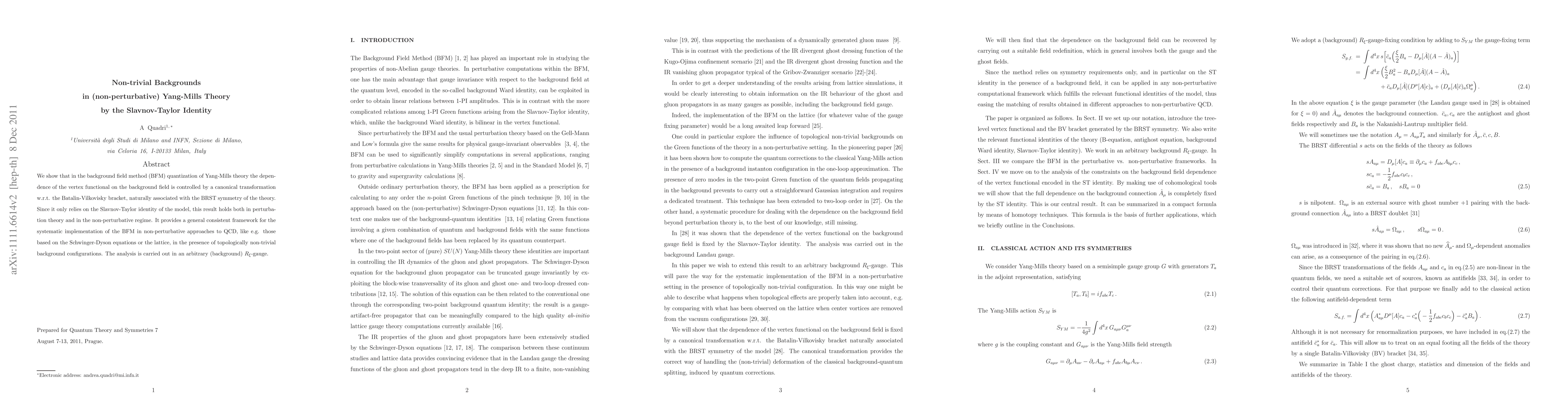 This paper demonstrates that the background field method (BFM) in Yang-Mills theory, controlled by a canonical transformation via the Slavnov-Taylor identity, provides a consistent framework for non-perturbative QCD approaches, applicable to topologically non-trivial backgrounds in any R_\xi-gauge. This method is valid both in perturbation and non-perturbative regimes.