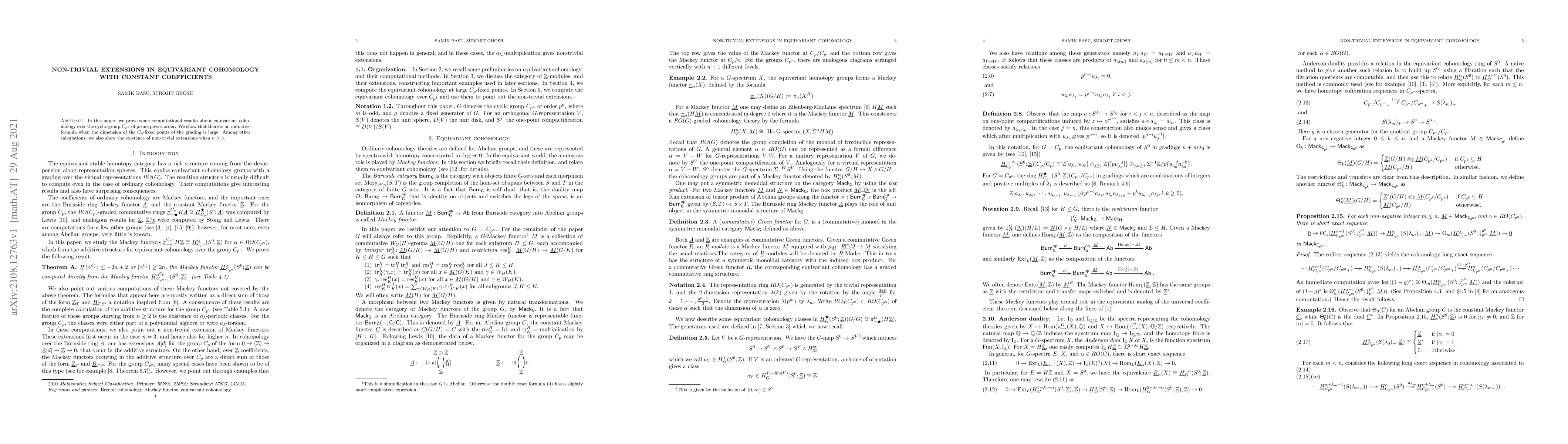 In this paper, we prove some computational results about equivariant cohomology over the cyclic group $C_{p^n}$ of prime power order. We show that there is an inductive formula when the dimension of the $C_p$-fixed points of the grading is large. Among other calculations, we also show the existence of non-trivial extensions when $n\geq 3$.