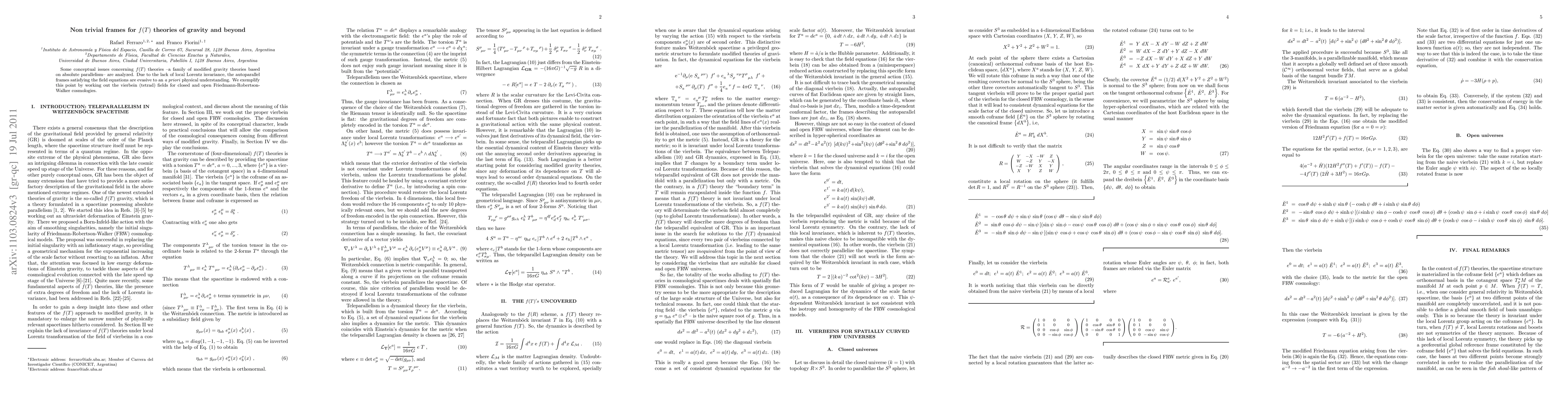 Some conceptual issues concerning $f(T)$ theories --a family of modified gravity theories based on absolute parallelism-- are analyzed. Due to the lack of local Lorentz invariance, the autoparallel frames satisfying the field equations are evasive to an \emph{a priori} physical understanding. We exemplify this point by working out the vierbein (tetrad) fields for closed and open Friedmann-Robertson-Walker cosmologies.