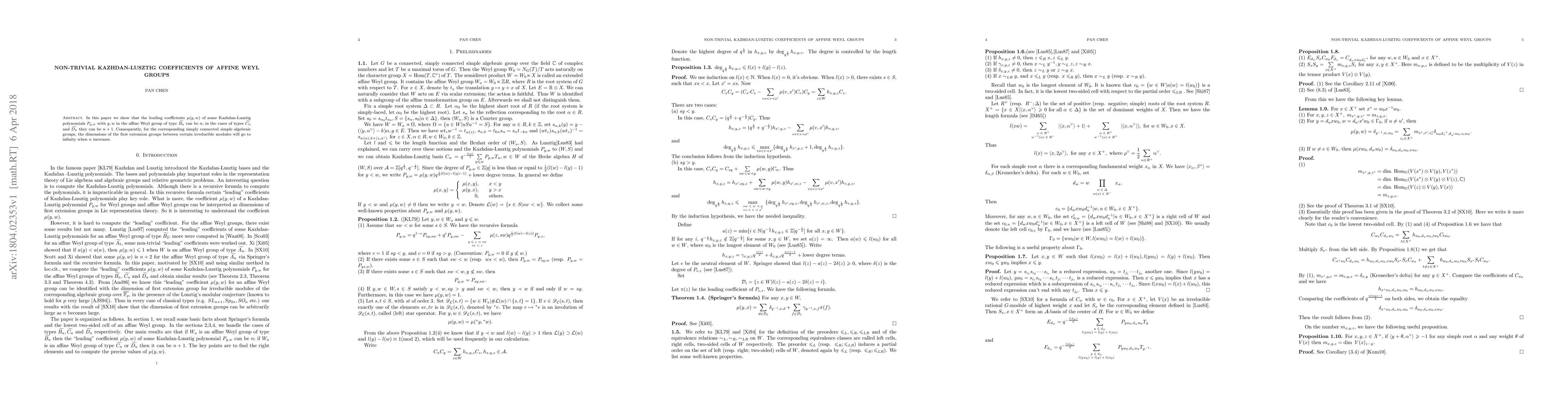 In this paper we show that the leading coefficients $\mu(y,w)$ of some Kazhdan-Lusztig polynomials $P_{y,w}$ with $y,w$ in the affine Weyl group of type $\widetilde{B_n}$ can be $n$; in the cases of types $\widetilde{C_n}$ and $\widetilde{D_n}$ they can be $n+1.$ Consequently, for the corresponding simply connected simple algebraic groups, the dimensions of the first extension groups between certain irreducible modules will go to infinity when $n$ increases.