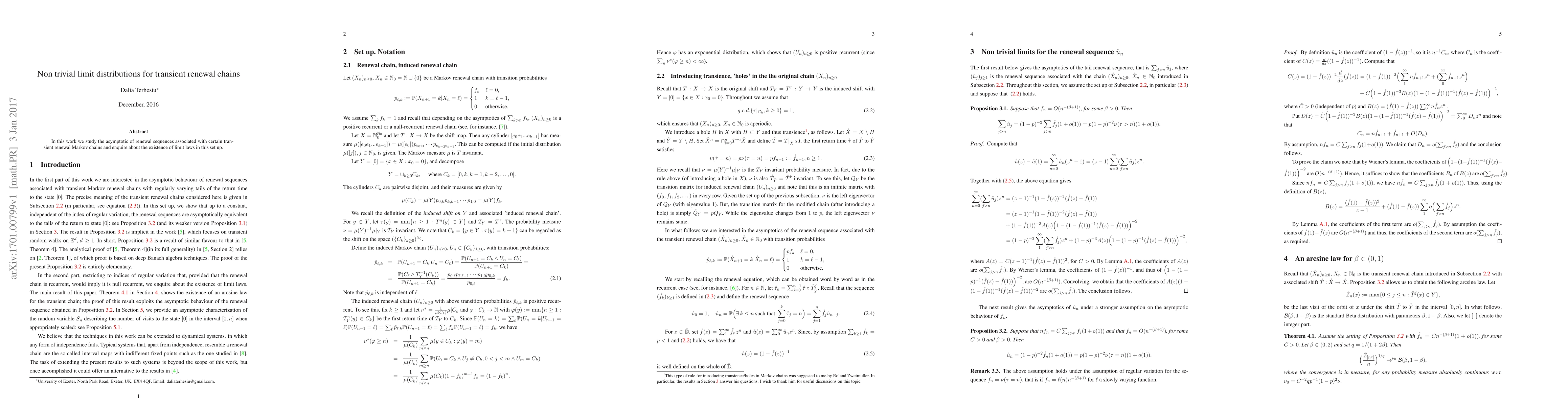 This paper investigates the asymptotic behavior of renewal sequences linked to transient renewal Markov chains, focusing on the existence and nature of non-trivial limit distributions as the process evolves.