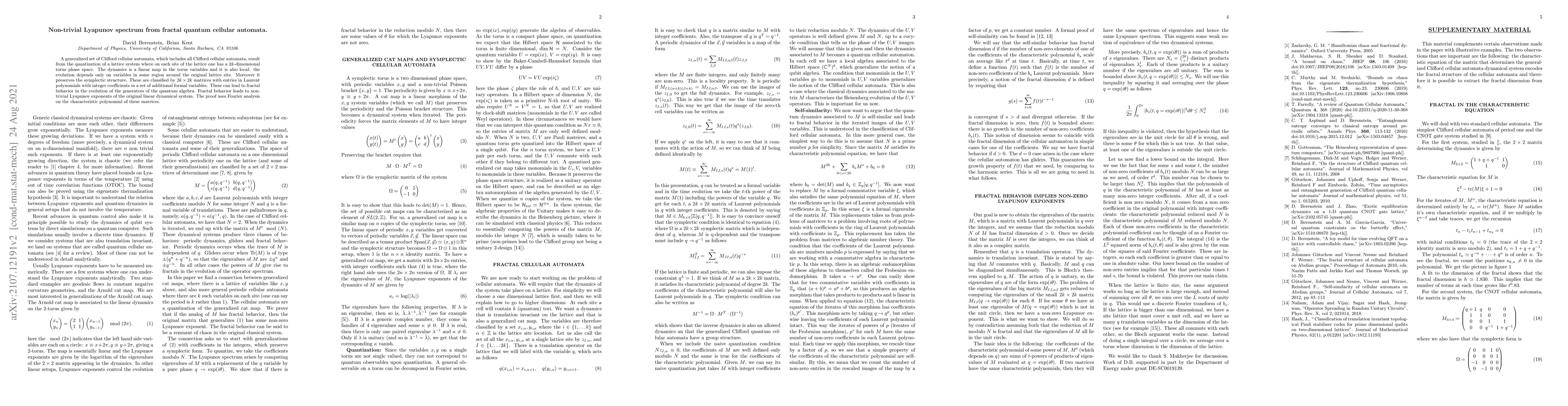 A generalized set of Clifford cellular automata, which includes all Clifford cellular automata, result from the quantization of a lattice system where on each site of the lattice one has a $2k$-dimensional torus phase space. The dynamics is a linear map in the torus variables and it is also local: the evolution depends only on variables in some region around the original lattice site. Moreover it preserves the symplectic structure. These are classified by $2k\times 2k$ matrices with entries in Laurent polynomials with integer coefficients in a set of additional formal variables. These can lead to fractal behavior in the evolution of the generators of the quantum algebra. Fractal behavior leads to non-trivial Lyapunov exponents of the original linear dynamical system. The proof uses Fourier analysis on the characteristic polynomial of these matrices.